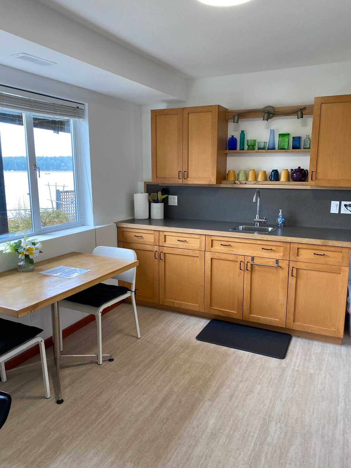 Această cabană confortabilă, construită manual, are ferestre mari și o punte spre Lacul Haga și spre peisajele stâncoase ale insulei Turtle. Este ascunsă într-o mică livadă de copaci falnici Cedar și brad, dar în inima orașului Mansons Landing cu magazine și o cafenea de panificație la doar câțiva pași. Este la zece minute de mers pe jos de înot, paddle boarding și caiac pe plaja Sandy, potrivită pentru copii sau la 15 minute de mers pe jos până la o plajă oceanică și Laguna Mansons. Piața de vineri și Muzeul Cortes sunt la o scurtă plimbare.