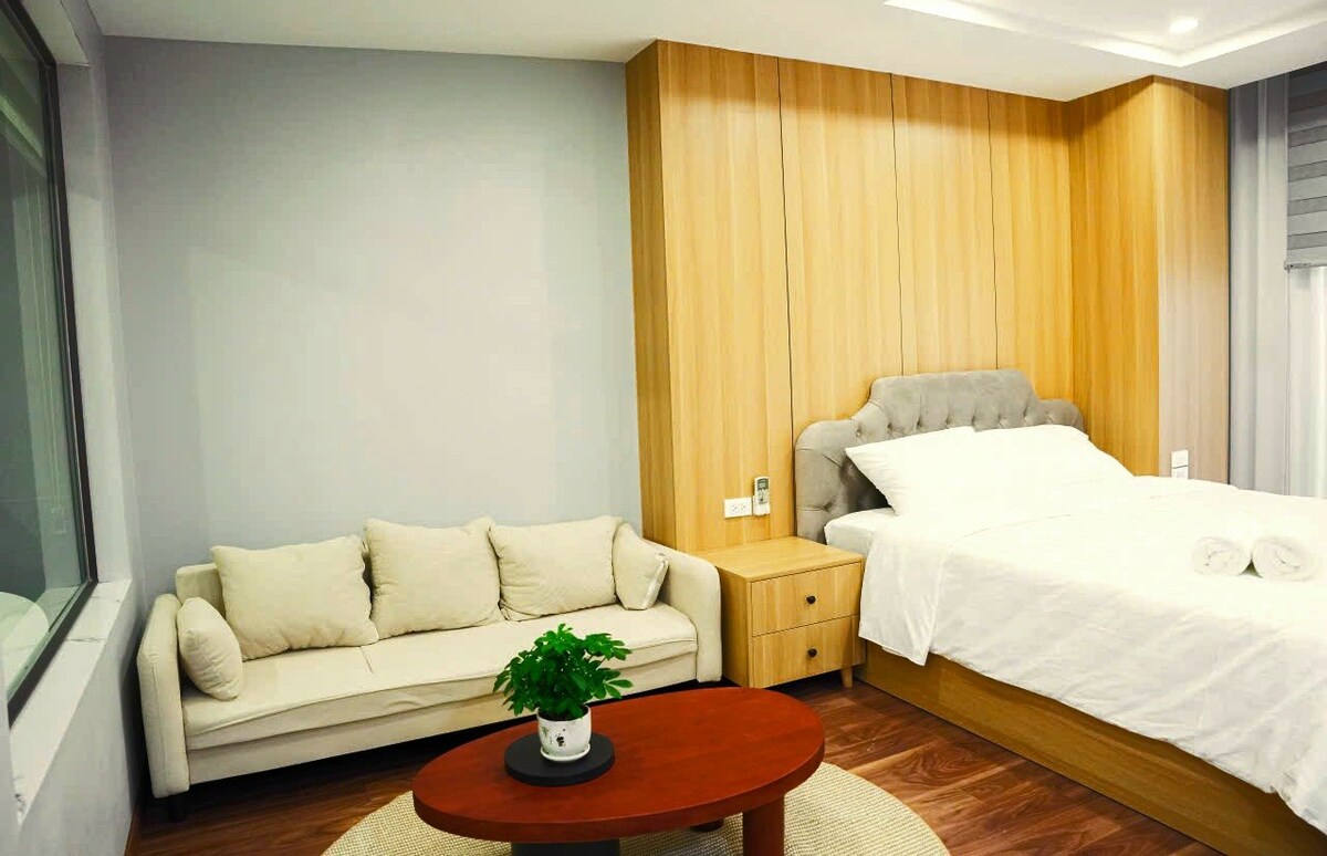 Nine Housing 90 Buoi Address: số 6 ngõ 90 đường Bưởi, phường Ngọc Khánh, quận Ba Đình, Hà Nội - 1 living room, 1 bedroom with balcony - fully equipment with kitchen, smart TV (netflix), air conditioner, elevator... - laundry and washing service on request - 10m to Buoi street, 30m to Dao Tan street *** NOTES: Balcony might be accessed from living room OR bedroom - it will subject to availability.