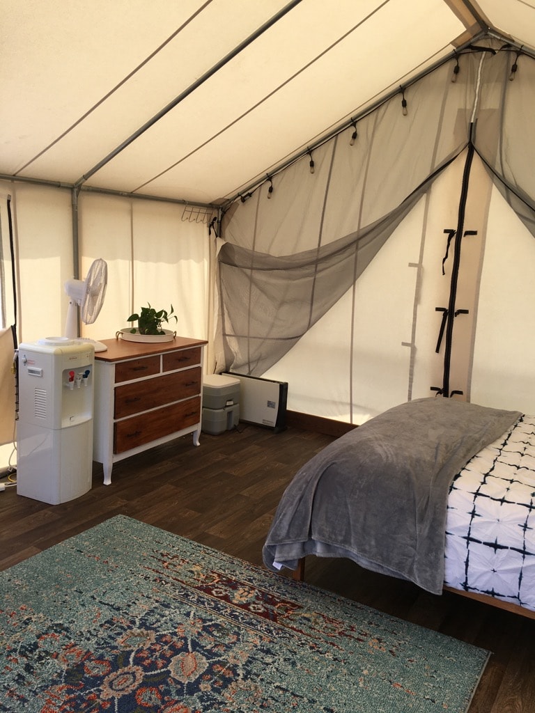 Experimentează glamping-ul unic, cu priveliști uimitoare ale râului Cardigan. Doar o scurtă plimbare până la magazinele locale, restaurante și port de agrement. Bucură-te de terasa de 8 picioare cu un grătar și un set de bistrouri. În interior vei găsi un pat matrimonial, un dulap, un ventilator, o zonă de relaxare și o bucătărie de camping. Wi-Fi și electricitate sunt incluse. Oaspeții au acces non-stop la o baie în port cu duș și parcare gratuită. Explorează plajele din apropiere, traseele, caiac și fructele de mare delicioase din satul fermecător Cardigan, PEI.