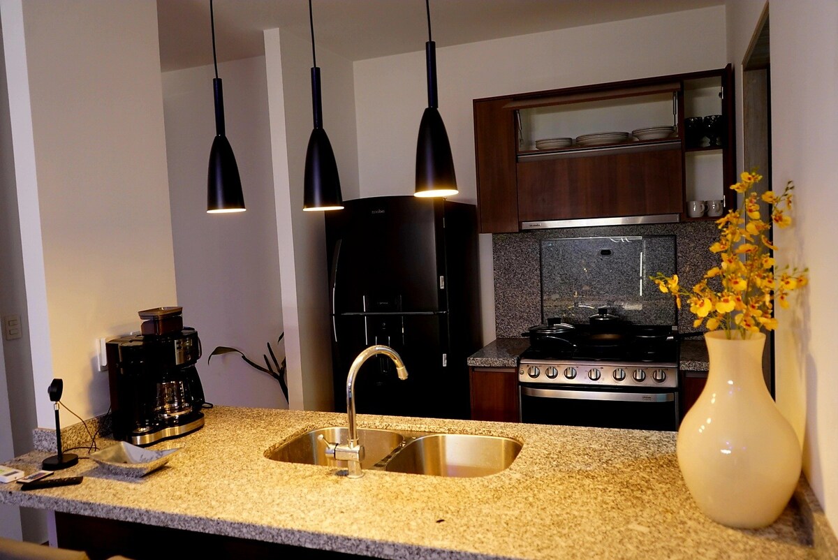 Nou-nouț, situat în inima orașului Juriquilla, acest apartament de 160 m2 oferă o experiență unică, depășind așteptările cu dotări și divertisment. Dacă ești în căutarea unei calități superioare, nu mai căuta și vino în cel mai modern și luxos apartament din Queretaro pentru o ședere de neuitat La câțiva pași de Starbucks, Walmart, baruri și restaurante de top, cum ar fi Sonora Grill & Hunger, acest apartament are totul, paturi confortabile, balcon, televizoare OLED 4K și un home cinema de 100" din patul tău