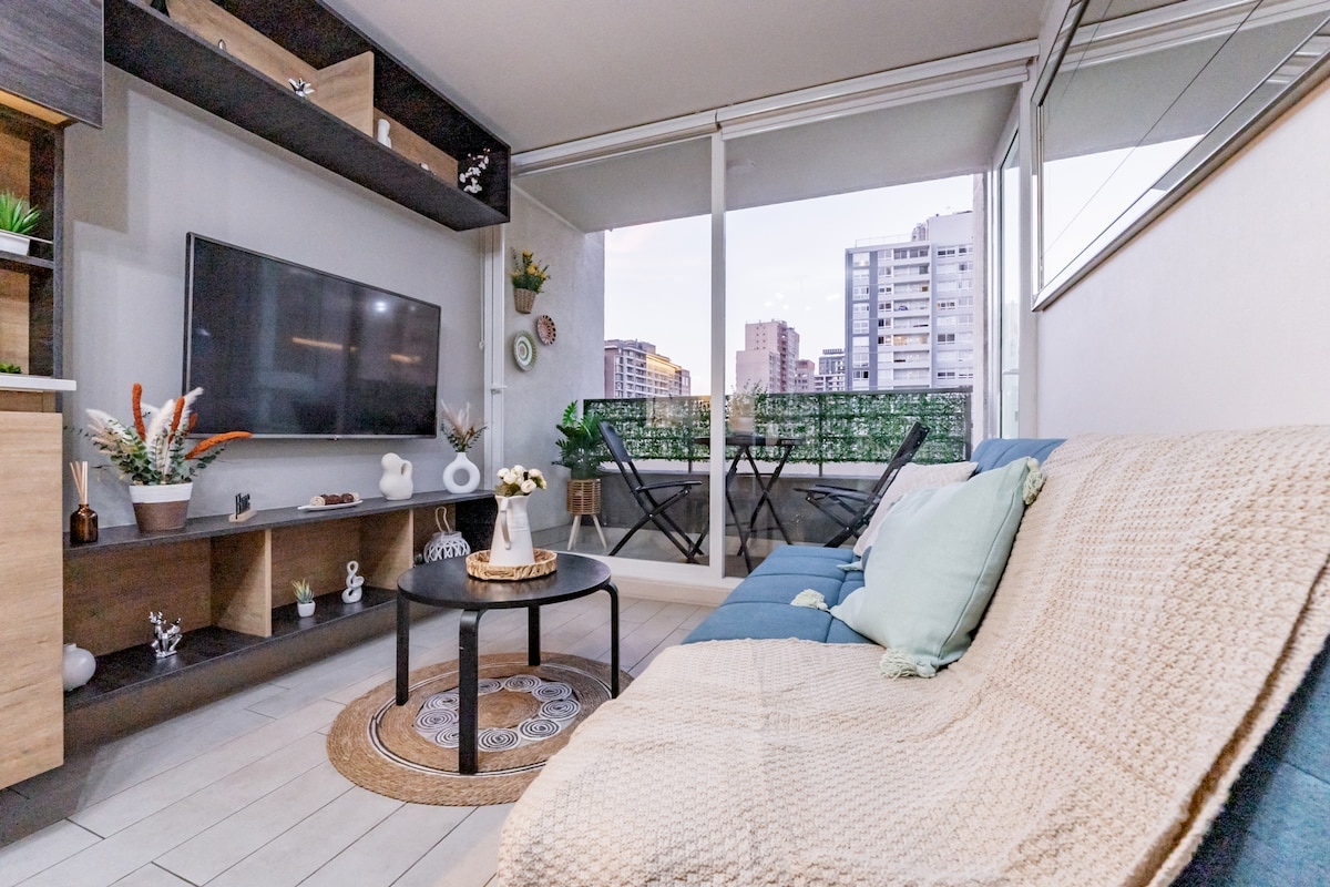 Relaxează-te într-un apartament modern decorativ în stil Bali🌴, care combină lemnul și fibrele naturale pentru o atmosferă caldă unică în Santiago. La 5 minute de Metro Conchalí 🚇 și la 10 minute de centrul orașului Santiago🌇. Ideal pentru turism, muncă sau cazări medicale🏥, în apropiere de Spitalul San José y Clínico U. de Chile. De asemenea, la 7 minute de Estadio Santa Laura ⚽ și la câteva străzi de Hipódromo Chile🏇. Bucură-te de balcon, Wi-Fi rapid și check-in independent non-stop 🔑 într-un spațiu sigur și conectat