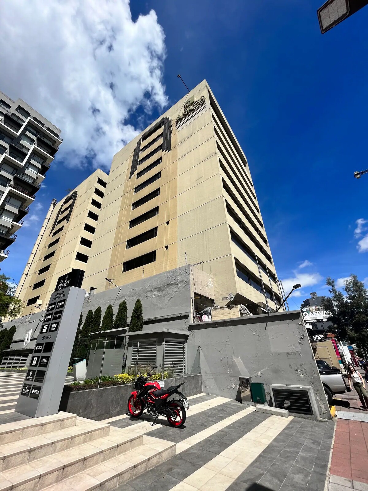 Acesta este situat în inima orașului Quito, cu o vedere panaromică spre Casa de Cultură și Adunarea Națională. Locația noastră este privilegiată, deoarece timpul de călătorie la principalele obiective turistice din Quito este de aproximativ 10 minute, cum ar fi centrul istoric și împrejurimile sale. Este un loc sigur unde vei trăi cea mai bună experiență turistică. Personalul hotelului este disponibil în orice moment, facem transferuri la aeroport