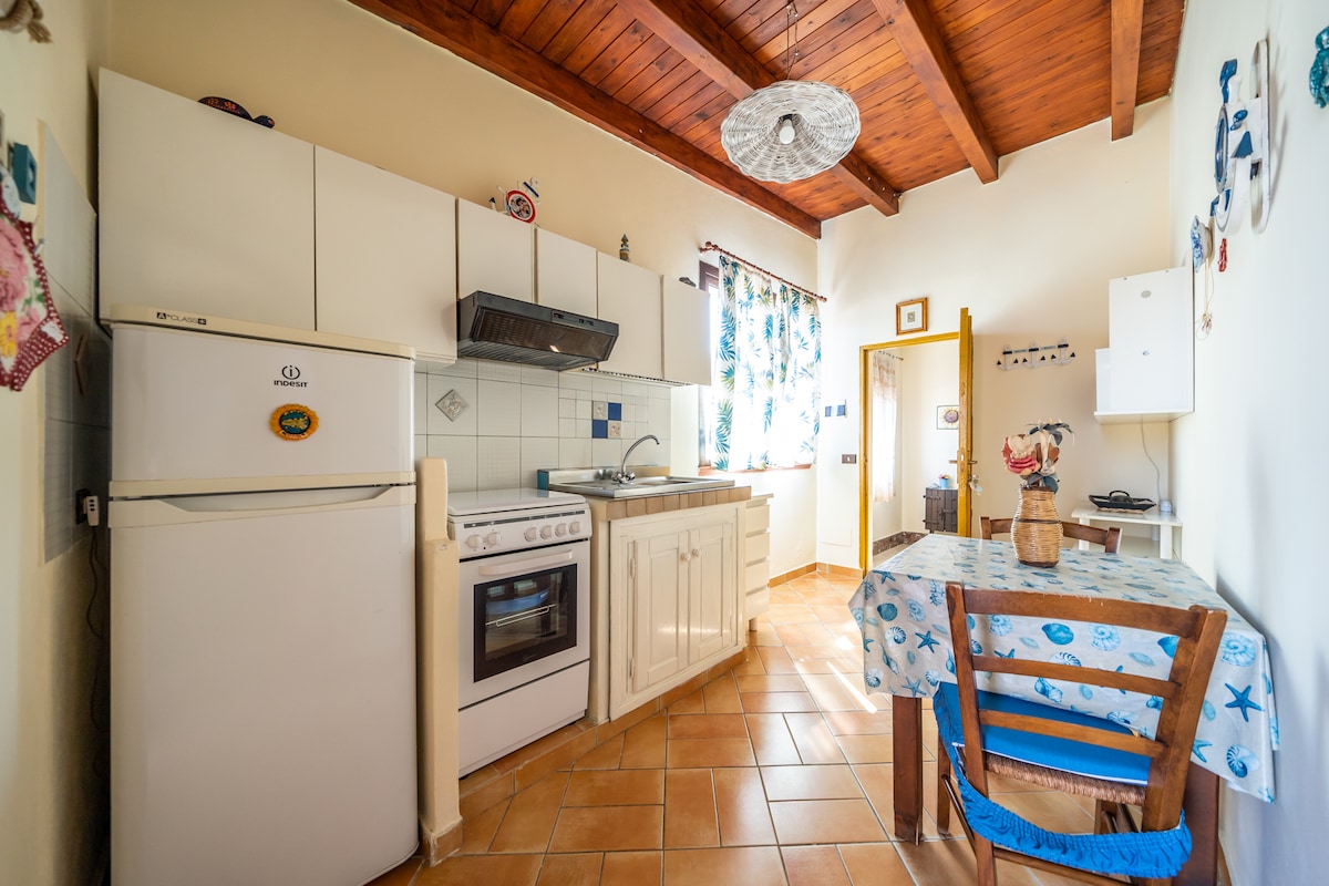 Dammuso tradițional independent, situat într-o casă semi-detașată. Constă dintr-un living mare cu chicinetă, un dormitor dublu, un dormitor mic cu două paturi, cu posibilitatea unui living suplimentar și o baie cu duș. Casa este dotată cu tot ce ai nevoie. În afara terasei caracteristice, te poți bucura de o vedere exclusivă la mare, iar cea din spate este întotdeauna umbrită. Proprietatea include parcare.