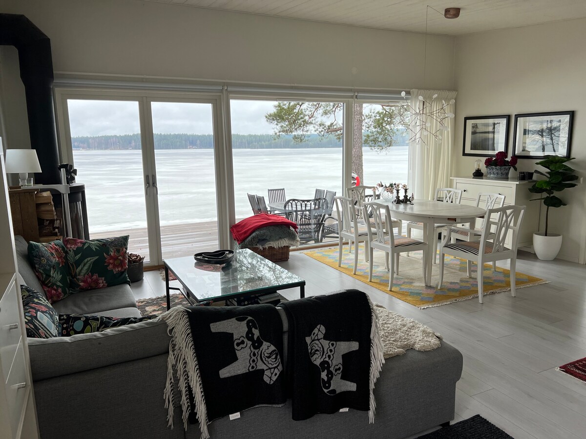 Wi-Fi gratuit, jacuzzi, la 3 metri de apă, liniștit și frumos, aproape de natură, mașină de spălat vase, mașină de spălat rufe, terasă, parcare privată, duș și toaletă, șemineu, încălzire prin pardoseală și totul este renovat în 2020. Lenjeria de pat și prosoapele trebuie aduse de oaspeți. Curățarea trebuie făcută înainte de check-out și trebuie făcută temeinic, de exemplu, aspirarea, ștergerea podelelor, ștergerea prafului din baie și bucătărie. Așadar, lăsați casa în starea în care era când ați venit. Barca cu vâsle este inclusă în cabană. Trebuie să faceți curățenie în casă înainte de a pleca.