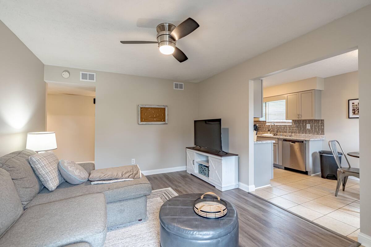 Experimentează farmecul modern minimalist de la mijlocul secolului în locuința noastră confortabilă 2BR, 2BA, la doar câțiva kilometri de centrul orașului, Etown Sports Park, Freeman Lake și spital, ceea ce îl face perfect atât pentru asistentele medicale de călătorie, cât și pentru familii. Bucură-te de o bucătărie complet utilată și de un spațiu în aer liber, cu grătar și groapă de foc. Această locuință este situată convenabil în apropierea zonei centrale a orașului Etown, unde poți explora magazinele, restaurantele și parcurile locale. Locuința noastră modernă confortabilă de la mijlocul secolului este locul perfect de cazare în timpul vizitei tale în Elizabethtown, KY.