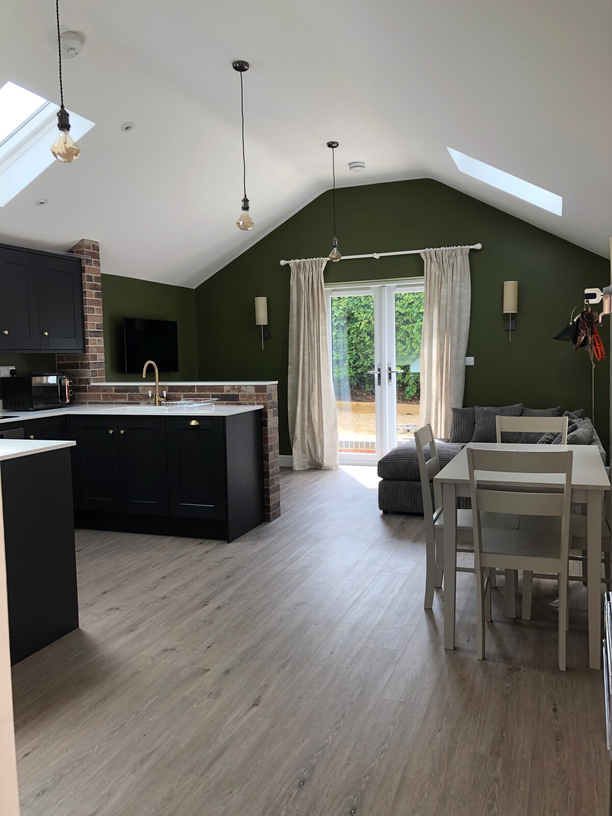 Adu ziua pe suprafețe din lemn și dulapuri clasice într-o bucătărie luminoasă în timp ce gătești un mic dejun delicios de care să te bucuri pe terasa grădinii. Întinde-te cu un paperback pe canapea, cu accesorii fermecătoare, decor de inspirație naturală și podele din lemn de esență tare. Un bungalou autonom cu 1 dormitor în curtea casei noastre, toate recent renovate, cu decor de bun gust în permanență. Dormitorul are un pat dublu, dar putem oferi și o canapea extensibilă în living și pătuț de călătorie (dacă este necesar).