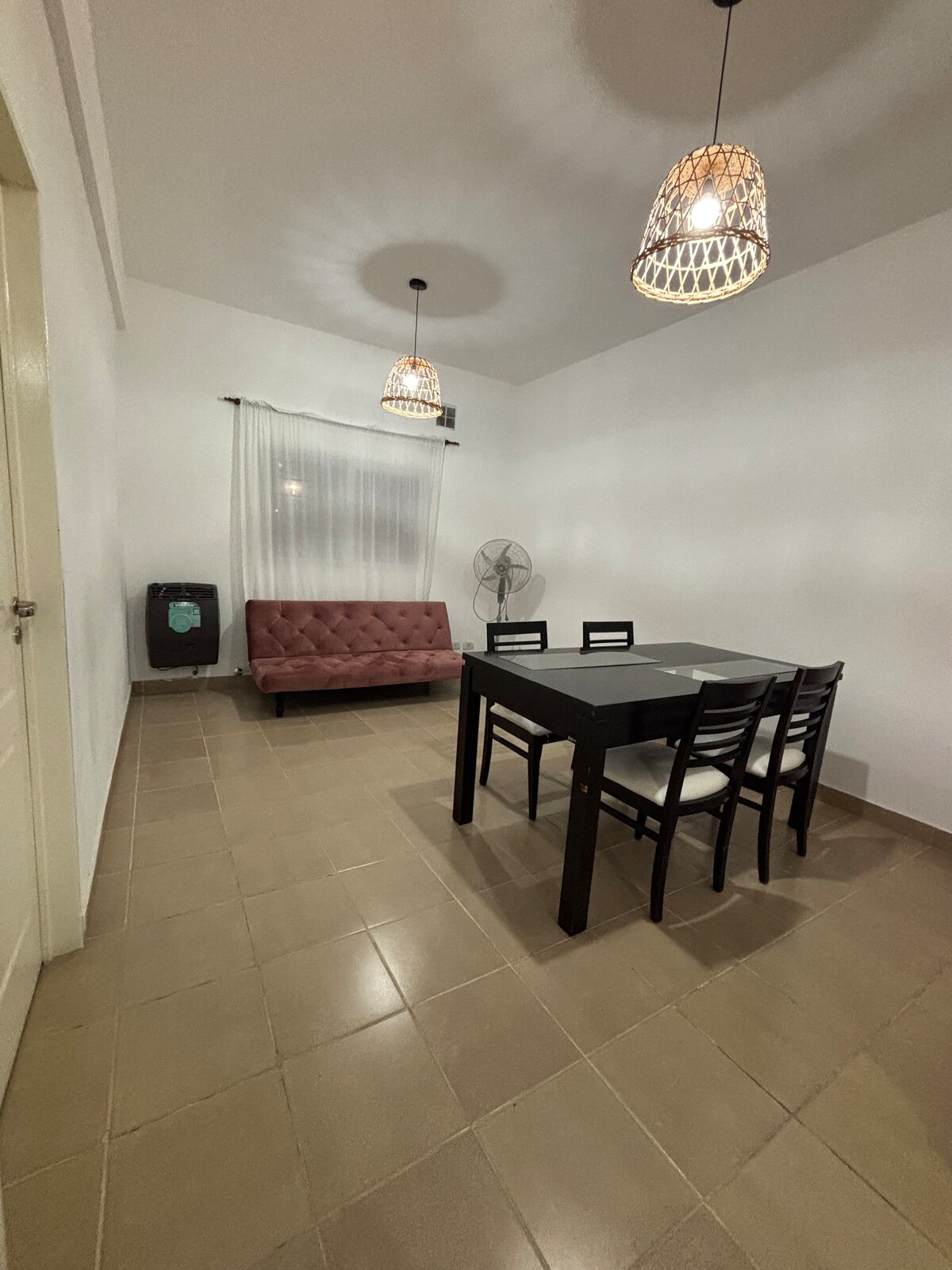 Relajate con toda la familia en este tranquilo alojamiento. A media cuadra del balneario municipal. Tv con cable. A cinco cuadras del centro. A 28 km, del Santuario de la Virgen del Rosario de San Nicolás. Podes estacionar con tranquilidad en la calle asfaltada. Patio con mucho verde.