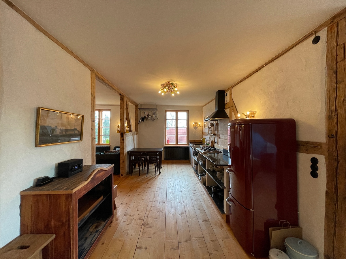 Vor der Unterkunft befinden sich eine ausreichende Parkfläche. Die Wohnung ist eine ausgebaute Landarbeiterkate des Gutshofes Frankenthal mit kräftigem sichtbarem Gebälk.. Der ursprüngliche Charakter ist erhalten geblieben, aber die Ausstattung ist zeitgemäß und modern. Neuzeitlicher Standard im verspieltem historischem Ambiente......hell und einladend mit weiten Blicken auf Natur und Landschaft