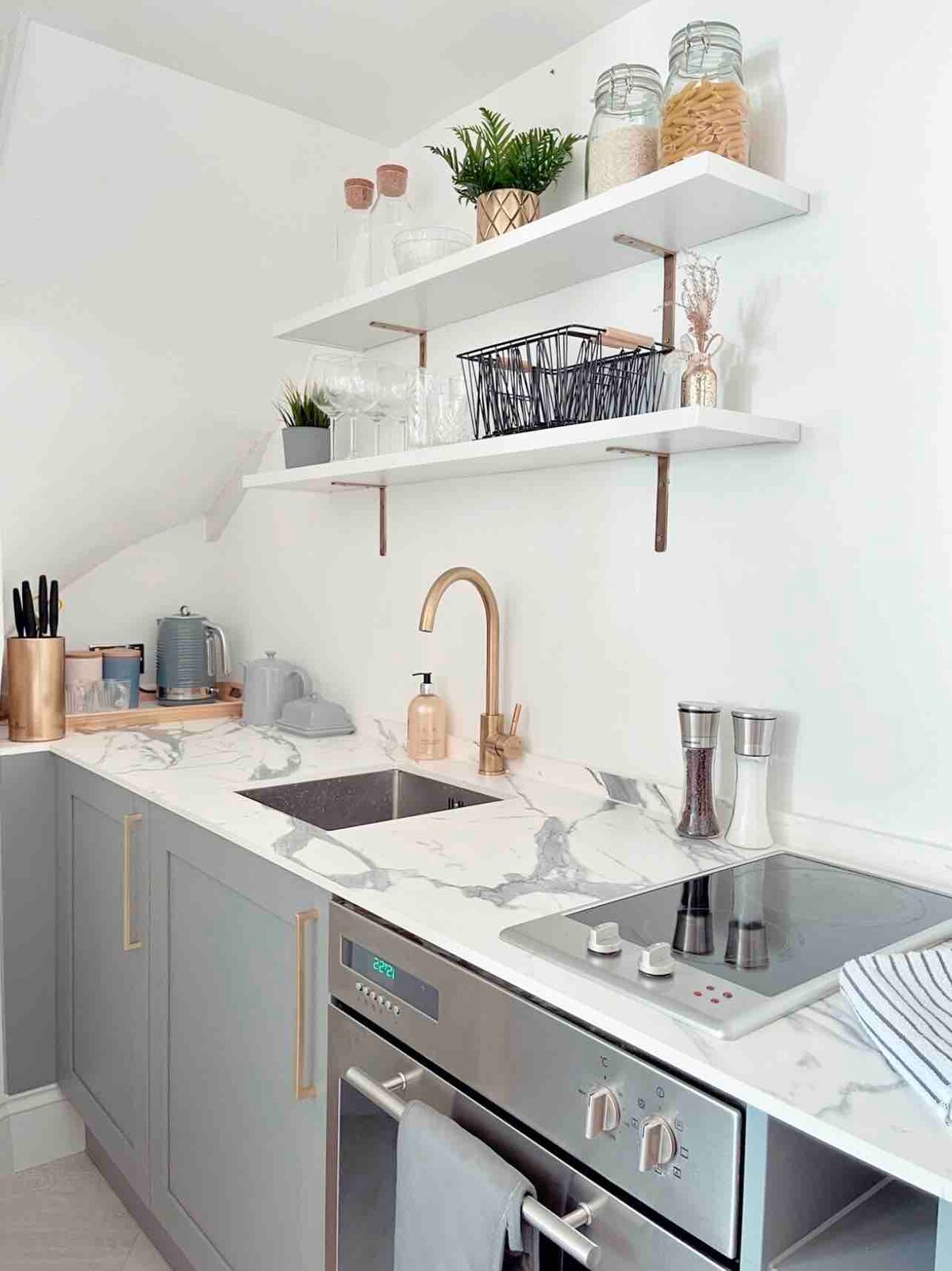 Studio regal de lux Cornish; bucătărie și vedere la mare