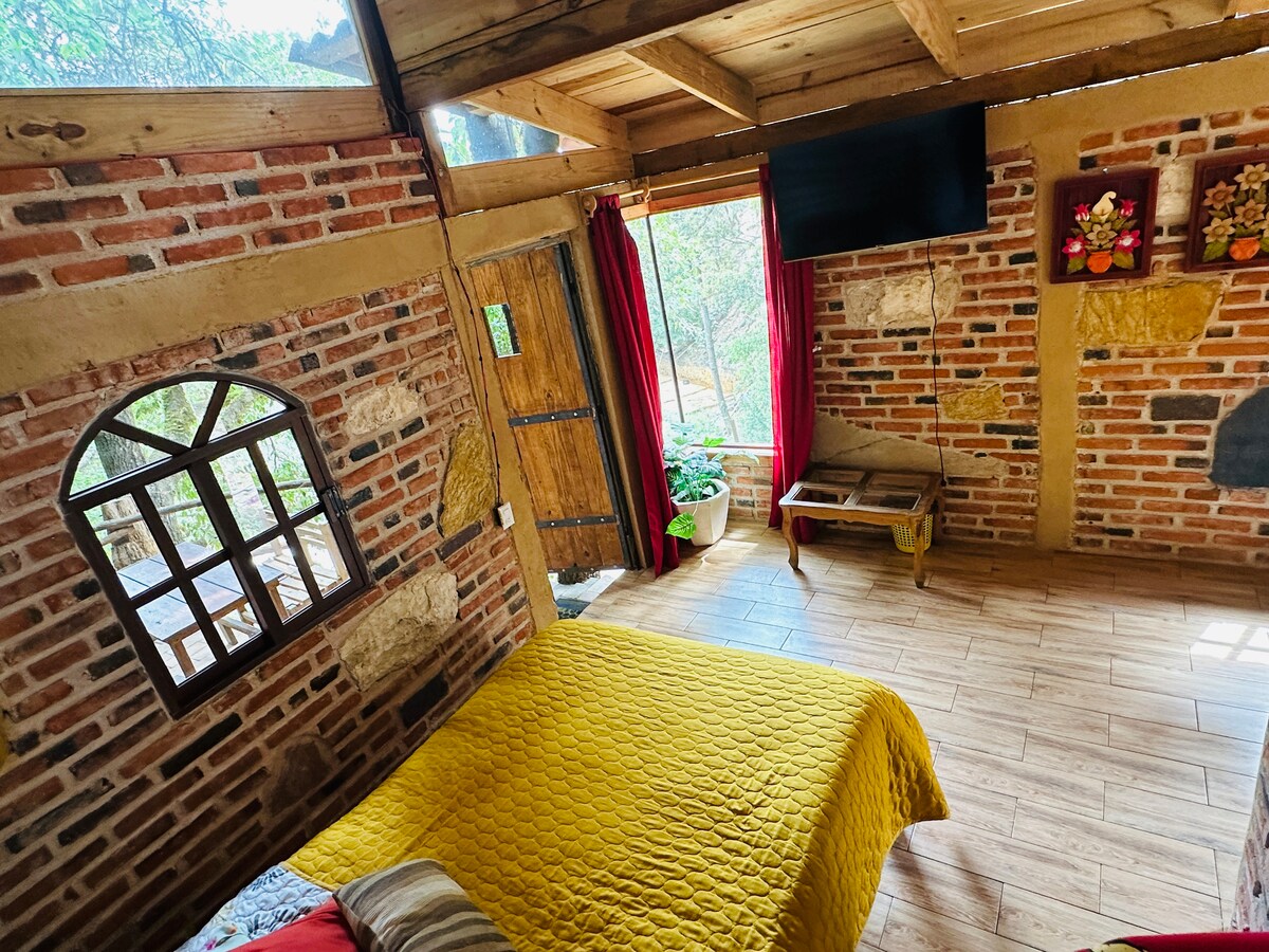De asemenea, caută cabana II și cabana III ! Foarte bine mobilat și confortabil, ideal pentru relaxare și pentru a fi aproape de natură. Ideal pentru 4 persoane. Foarte confortabil și sigur, cu trezire non-stop. Peisaj incredibil într-un mediu forestier. Are spațiu și pompieri. La 4 minute de orașul magic San Joaquin (mai multe servicii și spitale din apropiere). La 3 minute de zona arheologică Ranas, foarte aproape de activitățile de ecoturism. O experiență grozavă în Sierra de Querétaro!