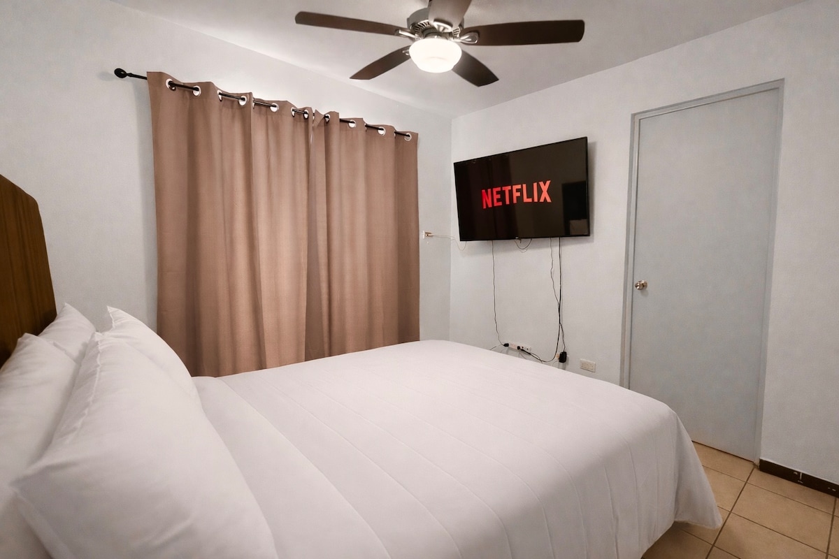 Descubre nuestro departamento,hasta para 4 personas Con 2 recamaras matrimoniales, y aire acondicionado, garantizamos una estancia agradable Disfruta de un baño completo, cocina equipada con cafetera, licuadora,estufa,Microondas utensilios, y un amplio refrigerador. Situado estratégicamente: a solo 5min en coche del Estadio BBVA,Domo Care,20 minutos del Parque Fundidora,Arena Monterrey,Estadio Banorte,30 min del aeropuerto. ¡La base ideal para explorar y disfrutar al máximo!TKS