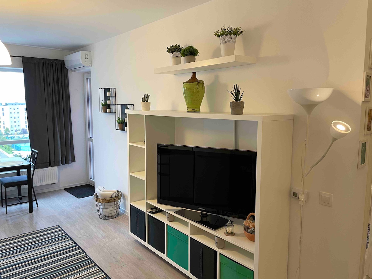 Studioul din Poiana Brașov, este un apartament elegant situat la parter, perfect pentru o escapadă relaxantă. Spațiul modern și confortabil include o bucătărie complet utilată, o baie și un living spațios. Decorul contemporan și facilitățile de ultimă generație asigură o ședere plăcută. Oaspeții au acces la centrul spa, piscine și restaurante contra cost. Studioul superior este ideal pentru a explora atracțiile locale, oferind o combinație perfectă de confort și aventură în inima Munților