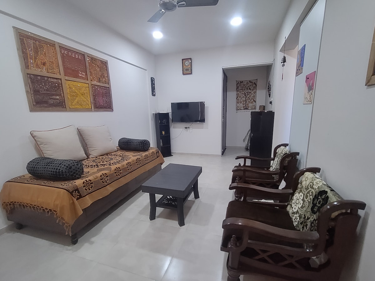 Lovely 2Bed 2Bath Hall Kitchen apartment with good day light. 1KM from Mumbai Agra Highway towards Pathardi phata road. 29KM /45 mins from Trimbakeshwar Temple,10KM Nashik Road station. 4 wheeler parking is available Strictly for married couples or Family, with Photo IDs and it should match. Pets allowed with discussion,visitors are not allowed after hours. 50 Mbps Wifi, 50 inch LED smart TV, Refrigerator,AC both Bedrooms ,Washing Machine,PureIt water filter & Kitchen essentials,Gas stove.