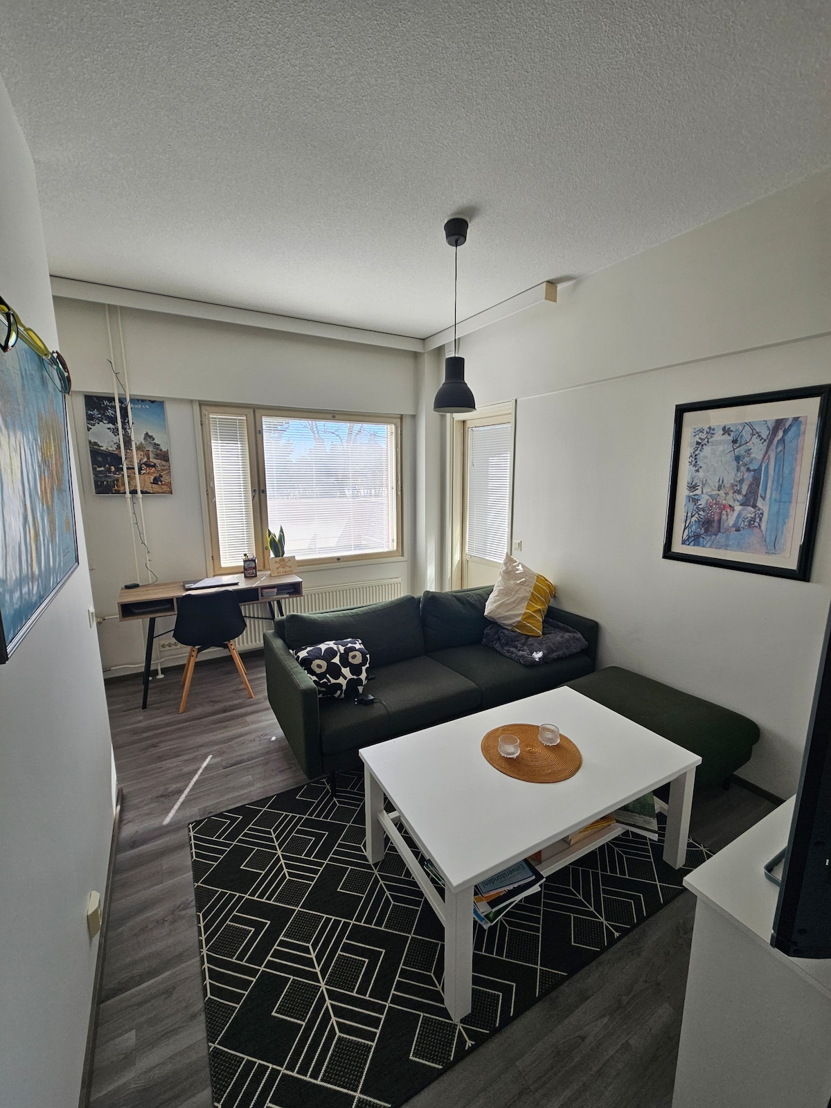 Apartament luminos cu o locație excelentă, chiar lângă centrul comercial Puuvilla și centrul universitar. Plaja râului este la câțiva pași, iar Kirjurinluoto este aproape. Apartamentul este nou și bine echipat, cu mobilier, veselă și dotări de bază. Apartamentul are un pat dublu și o canapea extensibilă pentru două persoane. Dacă este necesar, este disponibil și un pat suplimentar pentru o persoană. Apartamentul are Wi-Fi, iar oaspeții au acces la un loc de parcare cu priză în curte. Apartamentul are, de asemenea, o curte proprie.