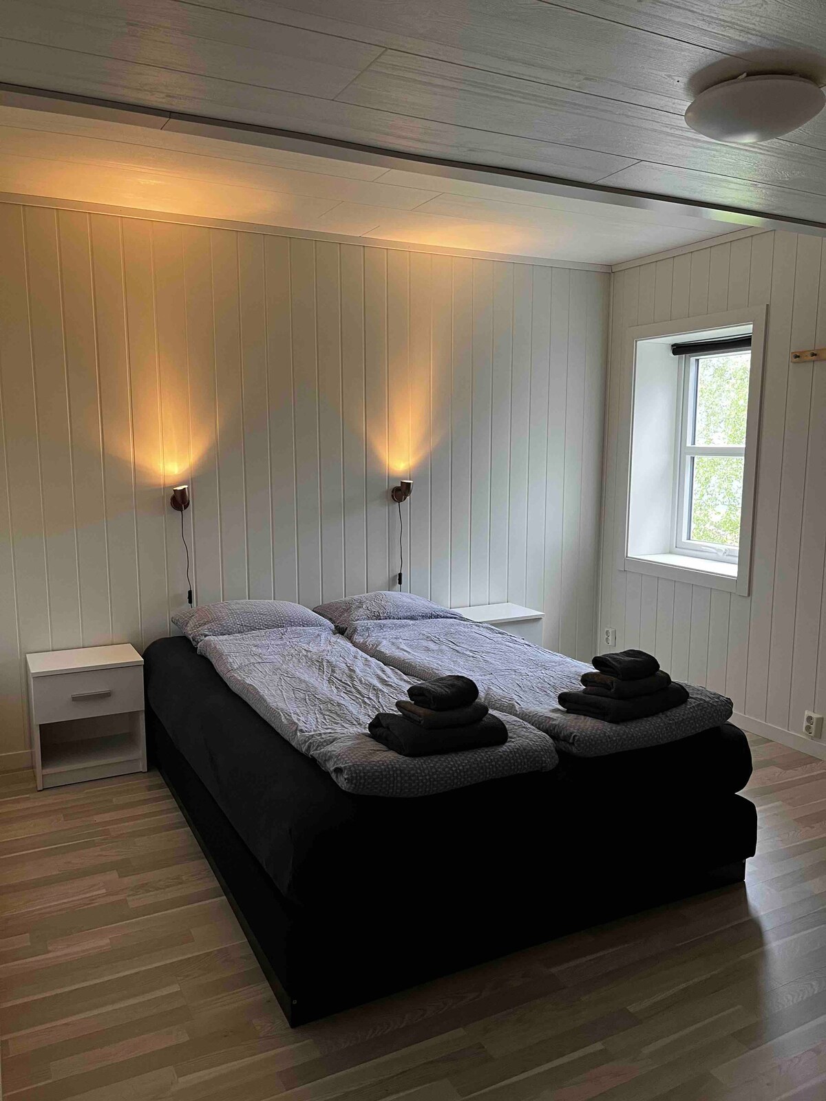 O posibilitate unică de a explora o bucată de arhitectură norvegiană frumoasă și o experiență cu picioarele pe pământ în timpul șederii tale în camera de baie. Un apartament mare și luxos cu facilități spa. Cameră dublă mică, dar confortabilă, cu o priveliște minunată. Intrarea la o saună frumoasă este inclusă, și micul dejun. Sezonul de vară mai - baia și bucătăria octombrie sunt comune. Yoga de dimineață inclusiv M-W-F. De la Oct- Fie ca toate facilitățile să fie doar pentru tine.