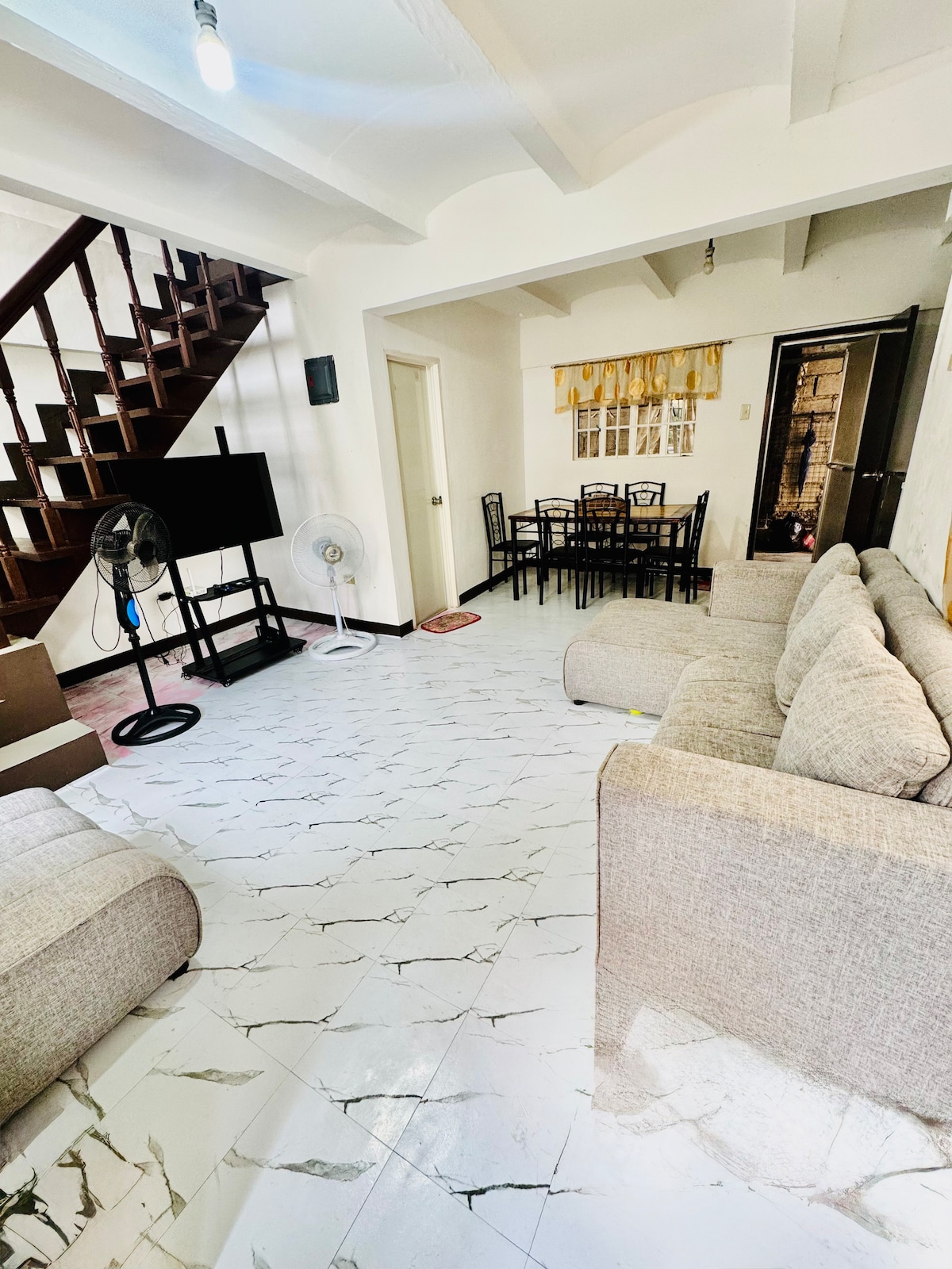 Petrece-ți timpul liber în spațiul nostru modern nou construit din Antipolo! Interiorul este conceput pentru a avea un spațiu de locuit interior și exterior fără probleme, având o ușă largă și complet operabilă din sticlă, care permite lumina naturală și briza exterioară în interior - creând o ambianță spațioasă, bine luminată și răcoritoare, ideală pentru relaxare, muncă sau orice altceva, spațiul îți va lumina cu siguranță starea de spirit! Iluminatul este, de asemenea, luat în considerare pe fiecare cameră și afară pentru un cadru de seară confortabil și elegant (un fel de romantic).