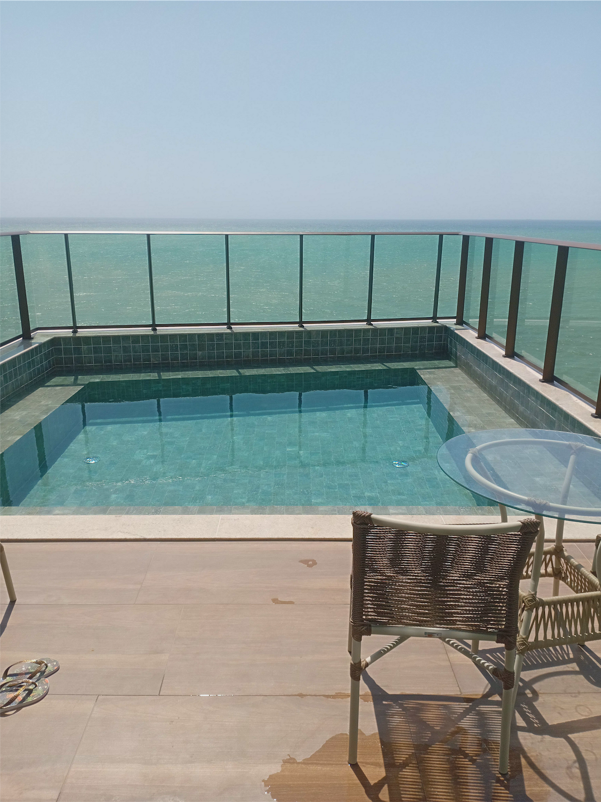 Apartament modern pe malul oceanului pe Av. Boa Viagem (Ivone Asfora Ed.). Balcon cu vedere panoramică, piscină pe acoperiș, sală de gimnastică și spațiu gourmet — alegerea perfectă pentru cei care doresc să se bucure de plajă, restaurante și acces ușor la aeroport. Ideal pentru cupluri, familii și persoane care călătoresc în interes de afaceri.