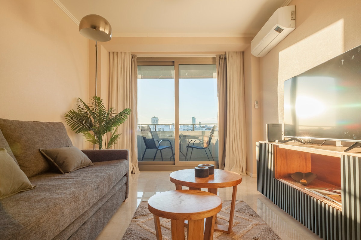 Brand new studio apartment with kitchinette, bathroom and balcony with great views in the heart of Recoleta. Cool modern decoration, fully equipped and safe. SmartTV with cable and Netflix (login with your account). Building with great facilities: heated indoor pool, outdoor pool with solarium, spa with massage room and sauna, and gym. Walking distance to the best restaurants, bars and cafes, as well as to bus and subway station.