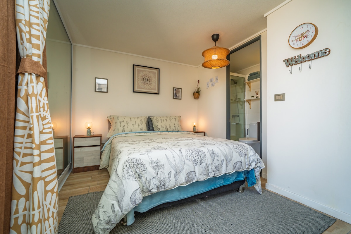 Bucură-te de șederea ta în acest apartament confortabil, la doar 2 străzi de stația de metrou Santa Isabel și foarte aproape de Barrio Italia. Vei găsi o conectivitate excelentă pentru a te deplasa prin Stg! Spațiul a fost conceput pentru confortul tău: sigur, liniștit și cu tot ce ai nevoie pentru a te simți ca acasă. Pat dublu. Bucătărie completă. Spațiu de studiu și/sau de lucru. Spălătorie plătită în clădire. Conceput pentru a menține o temperatură plăcută în timpul verii: ventilație încrucișată.