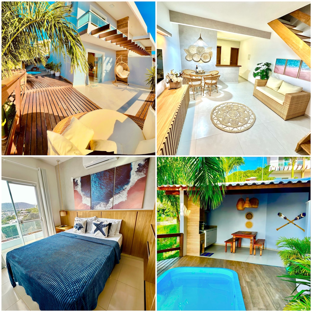 Casă de vis cu vedere privilegiată la mare + PISCINĂ privată pentru până la 5 persoane. Situată în Pontal do Atalaia, în Arraial do Cabo, casa noastră oferă o cazare UNICĂ. Viva privilegiul de a fi aproape de CELE MAI FRUMOASE plaje din ARRAIAL DO CABO, se află la 6 minute de mers cu mașina de Prainhas do Pontal sau dacă vrei să te plimbi (30 de minute) 13 min cu mașina până la Praia Grande sau Praia dos Anjos 10 minute de Mirante pentru a viziona apusul soarelui CASĂ SUPER CONFORTABILĂ pentru până la 5 persoane