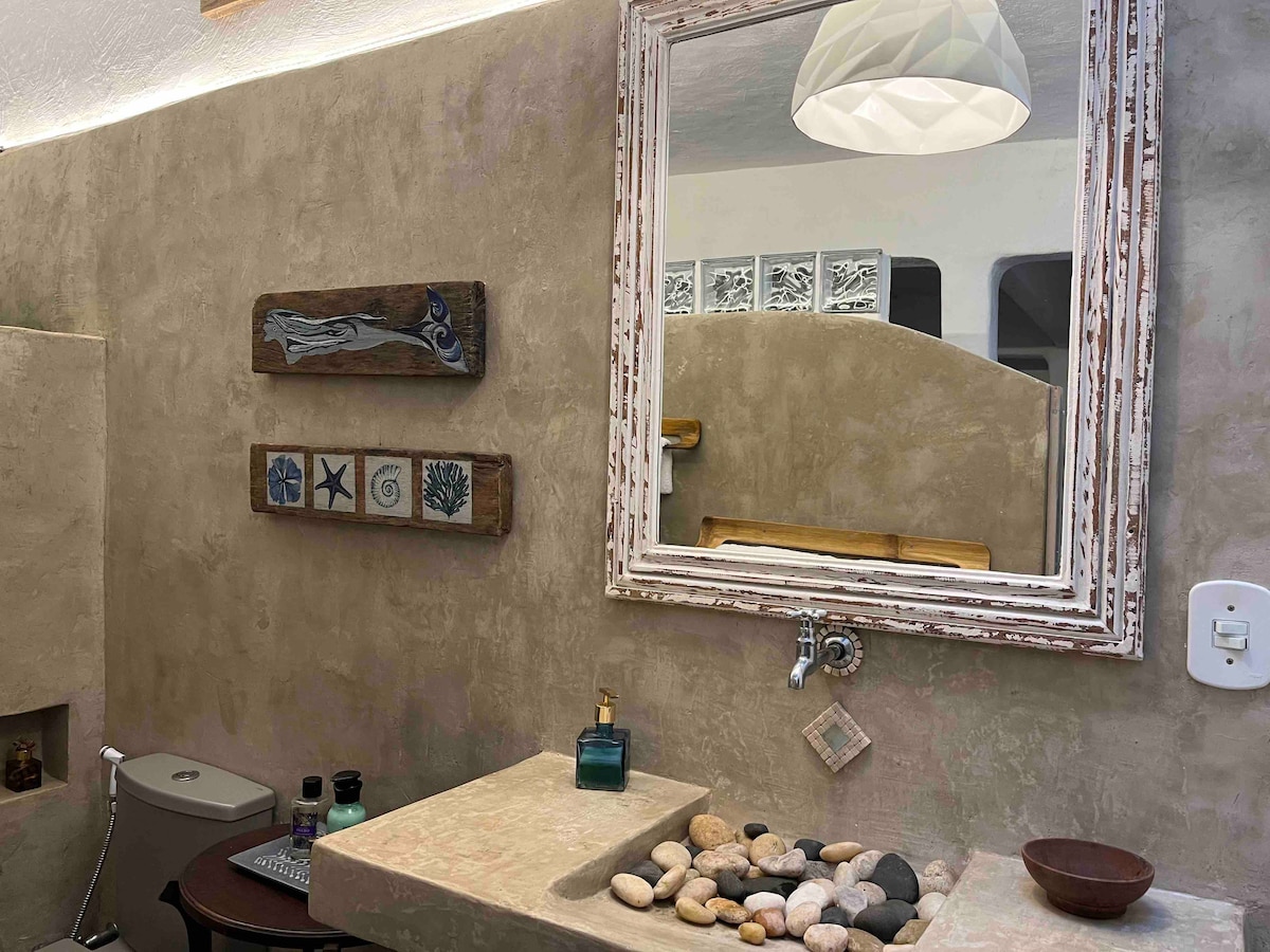 Casa mea cozchego este independentă și are pat confortabil, aer condiționat pentru relaxare, TV de 50 inch, canale de bază, 2 biciclete,lenjerie de pat, baie, săpun, apă minerală, ustensile de bucătărie și tot sprijinul pentru un sejur excelent. Spațiul este la 50 de metri de peisaje frumoase: plaje, apusuri de soare(în punctul de vedere Pontal do Atalaia) și 400 m de plaja Great Beach, piață, brutărie , farmacie. O să-ți placă spațiul!