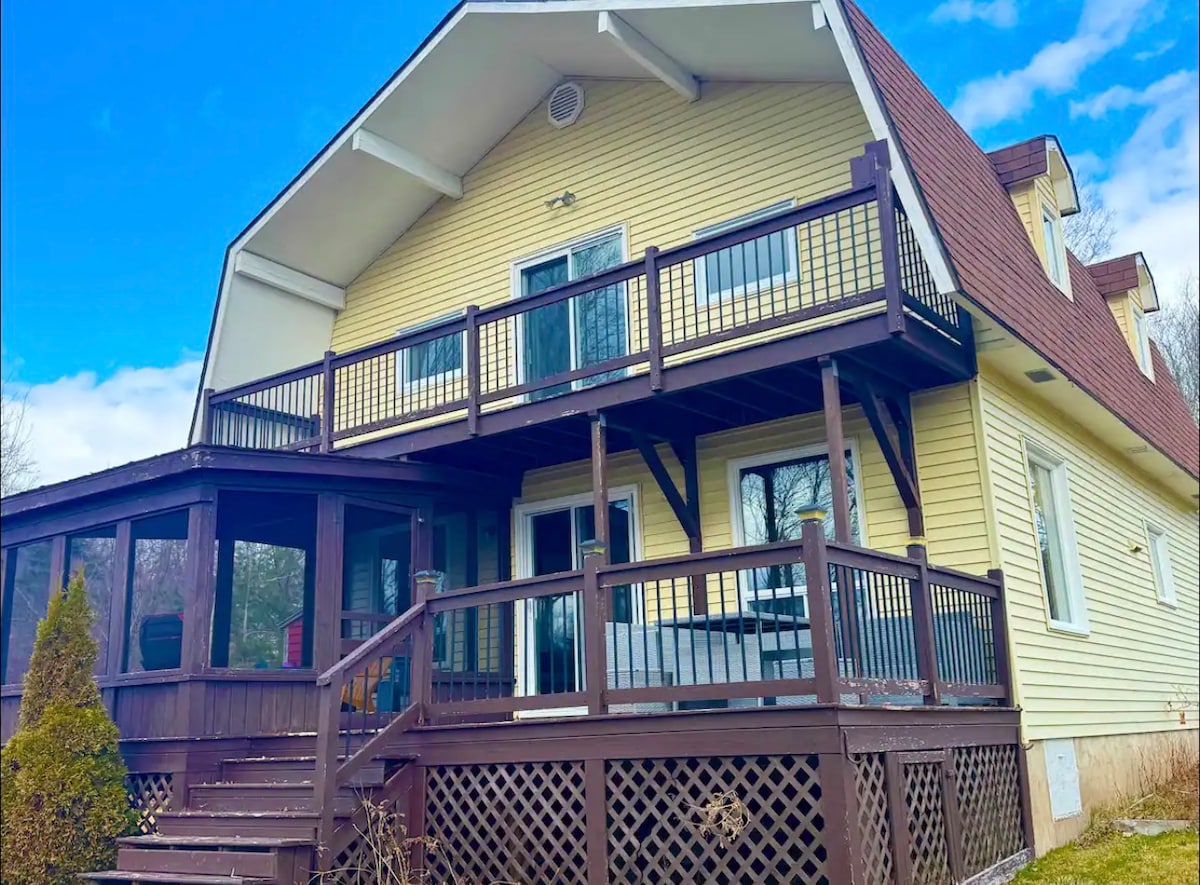 Evadează la cabana noastră liniștită de pe malul lacului din Laponia, NS. Amplasat în pădure, acest refugiu cu 2 dormitoare oferă priveliști uimitoare ale lacului și o atmosferă liniștită. Bucură-te de un pat matrimonial, două paturi twin și un pat ascuns. Terasa mare cu grătar este perfectă pentru relaxare. Explorează lacul cu sauna, canoele și caiacele noastre. La doar 20 de minute de plaje, magazine și restaurante și la 25 de minute de Bridgewater. Halifax este la 1,5 ore distanță. Oaza ta privată de pe malul lacului te așteaptă! Rezervă-ți astăzi escapada perfectă!