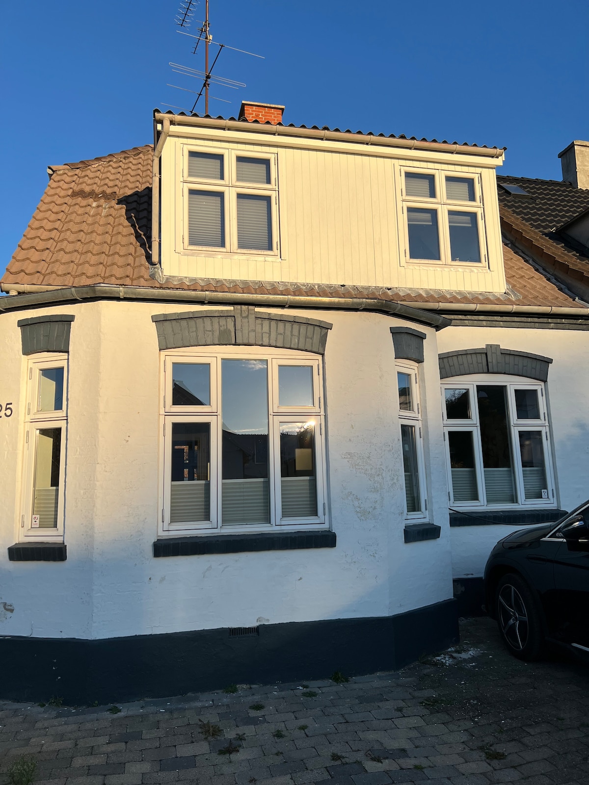 Vilă nou construită pentru tine. 3 km de centru Casa oferă: 2 dormitoare. Un dormitor cu TV și un pat pliabil. Alt dormitor cu pat matrimonial mare. 2 toalete și o baie. Bucătărie mare/cameră de familie. Masă pentru 8 persoane. Bucătărie cu toate echipamentele comune de bucătărie, astfel încât să poți găti, coace prăjituri etc. Living cu TV de 75"și sunet surround bun și DVD player. Netflix gratuit, HBO, TV2 Play. Wi-Fi gratuit Terasă acoperită cu grătar cu gaz. Parcare pe vreme uscată în port.
