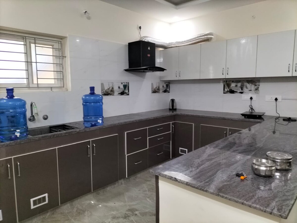 Locuința mea este la distanță de mers pe jos de Templul Padmavathi Ammavari și într-o locație rezidențială decentă. 2 BHK Casă curată și confortabilă, cu ventilație bună, două băi complete, bucătărie modulară și toate rafturile sunt mobilate. Magazinul alimentar situat în același spațiu al apartamentului îți îmbunătățește opțiunile de gătit autohtone cu bucătăria modulară frumoasă din casă. Locuința este aproape de activități de familie, de transportul public și de aeroport. Poate găzdui până la 10 oaspeți.