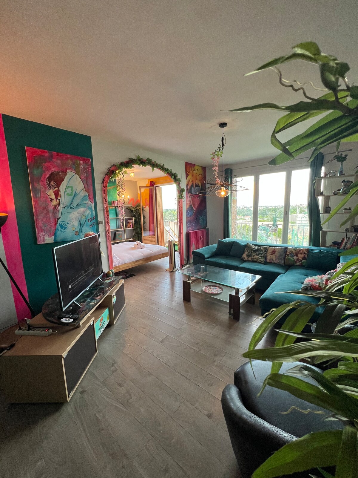 Situé dans l'hyper-centre de Décines, en retrait de l'artère principale, appartement F2 de 51 m2 situé à 20 min de Lyon- centre, 10 min d'Eurexpo en voiture, 20 min de l'aéroport Saint- Exupéry en voiture ou par transport en commun. Au 1 er étage avec ascenseur dans une élégante résidence à proximité de tous commerces. Tout le mobilier est neuf. Cuisine équipée ouvrant sur séjour avec canapé convertible 2 places, TV connecté, wifi, chambre avec lit 2 places et TV, salle de bain avec wc.