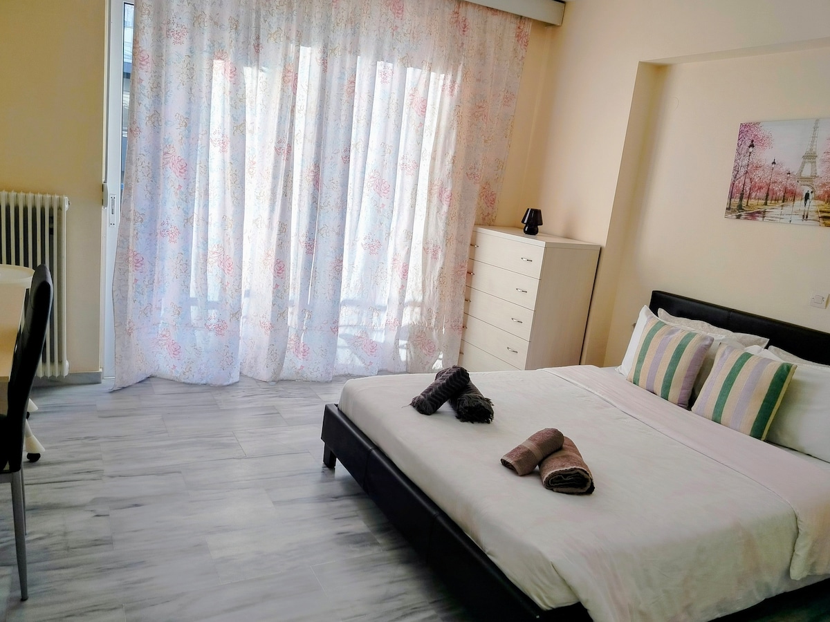 Studio panotamic la etajul 1, cu vedere frumoasă la mare și la coasta Rethymno, cu Wi-Fi, TV cu plasmă de 43 inchi, chicinetă și WC. Chiar în fața studioului se află plaja organizată și liniștită din Rethymno, unde poți înota și te poți relaxa. Studioul este situat lângă un supermarket unde îți poți cumpăra alimentele, cartierul are tot ce ai nevoie, inclusiv sală de gimnastică, restaurante, cafea, baruri , închirieri auto . De asemenea, orașul vechi istoric Rethymno se află la o distanță de 7 minute de mers pe jos