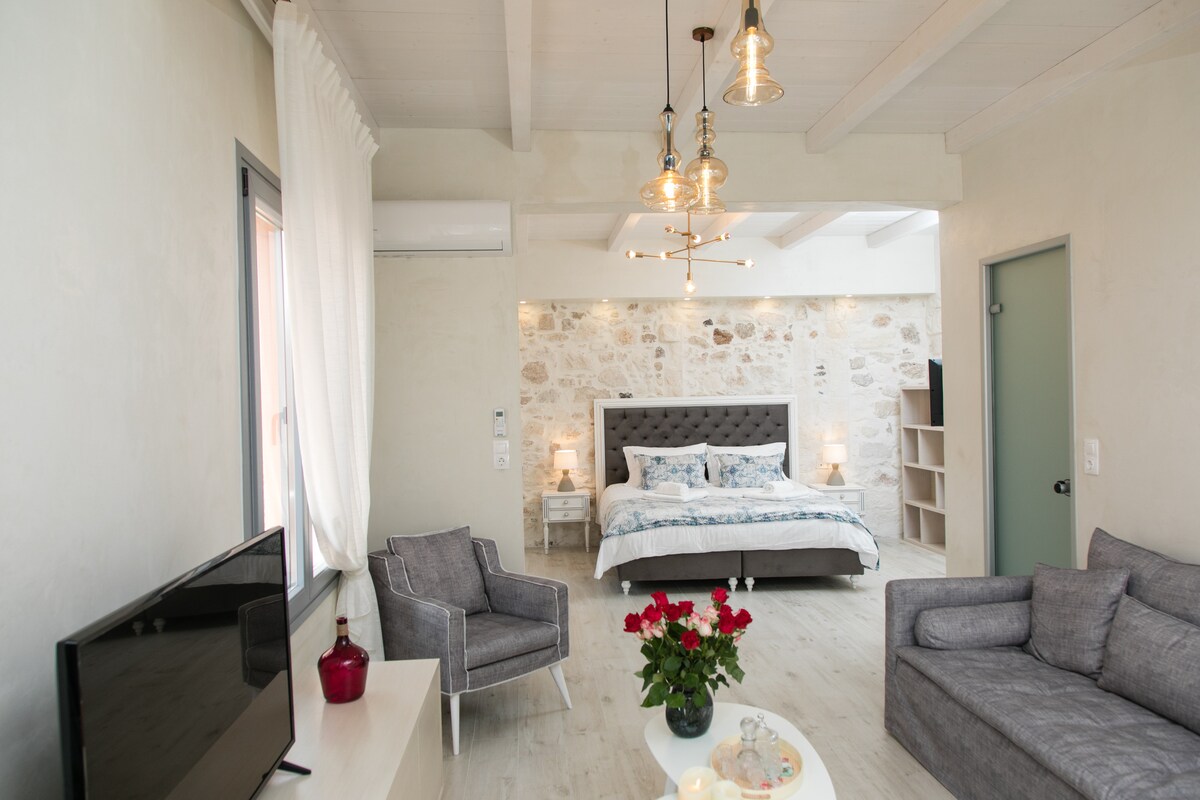Welcome to our charming Airbnb suite in the heart of Rethymno's Old Town. This fully equipped apartment offers a blend of tradition and modern comfort. Relax in the jacuzzi located on your private terrace where stunning views of the Fortezza castle and Venetian minaret await. Immerse yourself in the rich history of Crete as you explore the streets and tavernas nearby. Whether it's a romantic getaway or a family vacation our suite promises an unforgettable experience in Rethymno's historic center