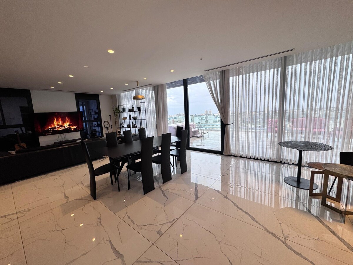 להתעורר מעל העננים. פנטהאוז בסטנדרט בינלאומי המציע חווית אירוח נדירה. הסלון העצום עטוף חלונות ענק, ולרשותכם שתי מרפסות מפנקות לקפה של בוקר או יין מול השקיעה. חדר השינה הוא יצירת מופת אדריכלית עם תקרות גבוהות וקירות זכוכית שפשוט מכניסים את הנוף למיטה. השילוב המושלם בין פאר, שקט ומיקום מרכזי מנצח.