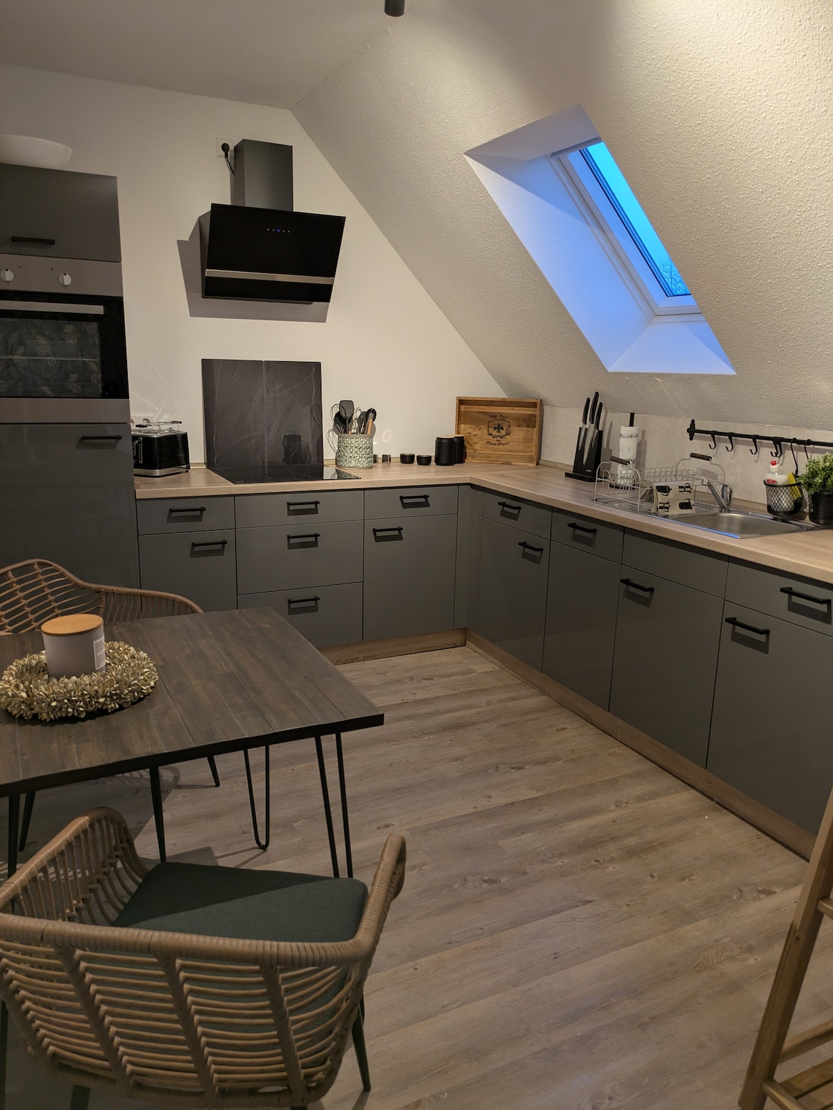 La marginea de nord a orașului Rheda-Wiedenbrück veți găsi apartamentul nostru, situat idilic între câmpuri, într-o curte liniștită cu copaci bătrâni mari - cei 32 de stejari ai noștri! Apartamentul, 45 mp, este un apartament galerie cu o bucătărie confortabilă, complet utilată, living. În galerie se află un pat dublu de 1,80 m. Zona de living de la parter are o canapea extensibilă (pentru 2 persoane) și o baie. Apartamentul include, de asemenea, o terasă mică.