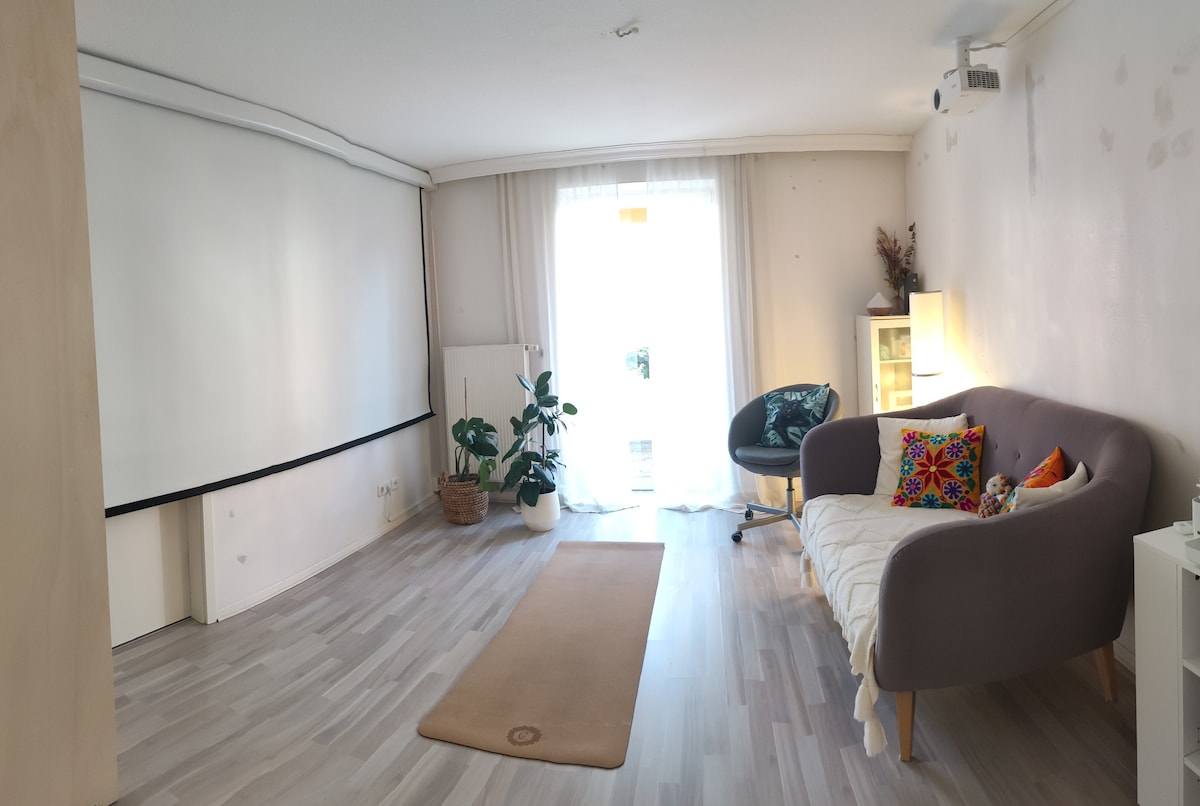 Bucură-te de Köln la cel mai înalt nivel în apartamentul nostru de cinema. Bine ai venit în acest apartament luxos de 118 m², care oferă tot ce ai nevoie pentru o ședere plăcută în Köln: Pat → DE PRIMĂVARĂ ÎN CUTIE (PAT matrimonial) loc de parcare→ gratuit Home cinema→ de 100 inch și aparat de popcorn → Bucătărie și mașină complet automată Colț de→ lectură Distanță de→ mers pe jos față de tot ceea ce îți dorește inima. Conexiune → perfectă cu mașina sau cu transportul în comun. ☆„Chiar te simți ca acasă. Vom rezerva cu Svyvo din nou și din nou!”