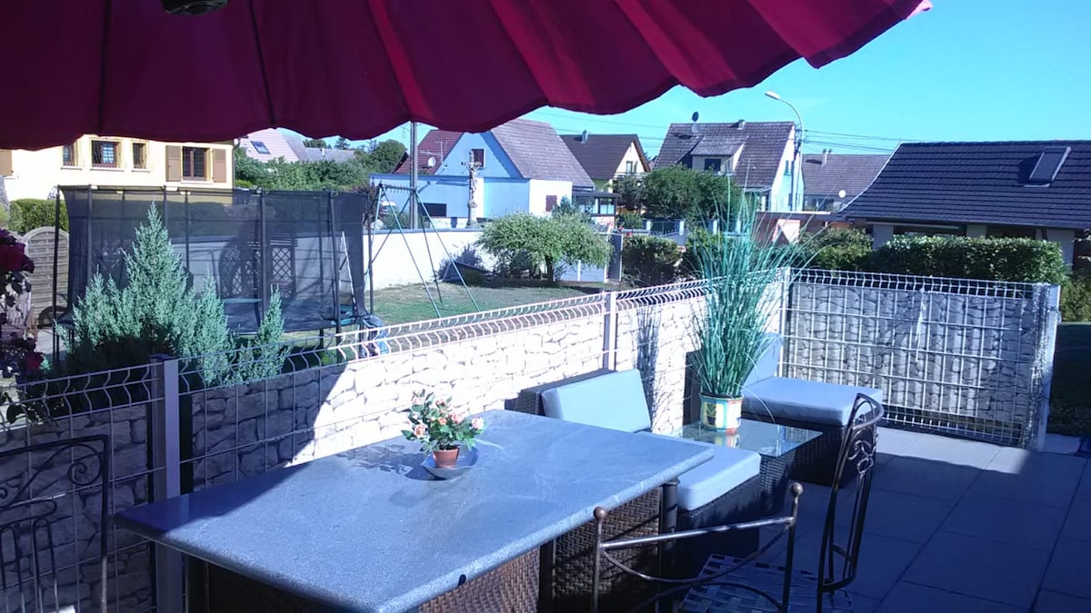Un duplex nou mobilat într-o clădire exterioară cu o intrare separată. Un ceainic, filtru de cafea, frigider, plită și cuptor cu microunde sunt disponibile. Lenjerie de pat nouă. Se află la 100 m de toate magazinele (brutărie, restaurant), la 15 minute de Strasbourg și la 6 km de Pflimlin Bridge (Germania). Un parc mare de agrement este la 35 de minute (parcul Europa). Vara te poți bucura de o grădină mare. Este locul perfect liniștit pentru a vizita Alsacia, Strasbourg și Colmar.