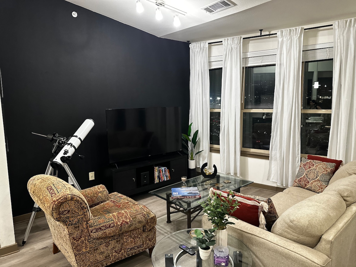 Professionally Hosted Apartment, for wise travelers seeking value, comfort and cleanliness. Whether you are traveling for fun or business or a travel nurse, our place is ready to serve your needs. King Bed in Bedroom + Queen Bed Pullout Couch + Air Mattress 2, 75 inch tv (Living room&Bedroom) Netflix + Hulu + DisneyPlus Included By HWY 75 & GeorgeBush HWY(easy access to all of Dallas) Restaurant/Bars/Grocery/Spa(walkable distance) Access to all community amenities Self Check In + Free Parking