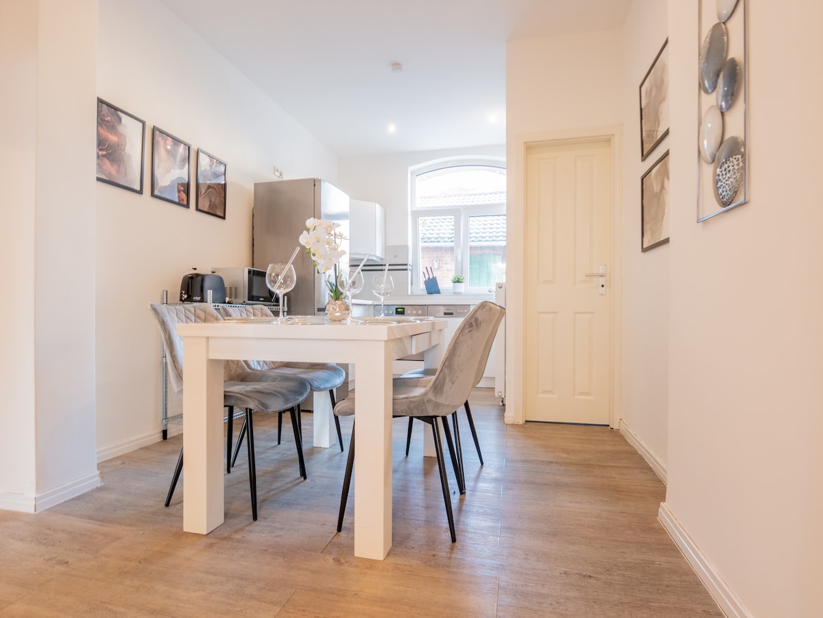 Pentru șederi de lungă durată, te rugăm să ne contactezi, fie din cauza daunelor provocate de apă, fie de un cabinet medical. Avem oferte în astfel de cazuri. → Living cu canapea extensibilă (de 2 persoane) cu Smart TV ambilight → Dormitor cu pat matrimonial - Dulap + colț de machiaj → Al doilea dormitor cu pat extensibil → Aproape de centrul orașului, Universitatea Leibniz, Maschsee (accesibil în aproximativ 10 minute) → Baie modernă Kache → complet echipat → Cafetieră cu picurare → Smart TV, Netflix și Wi-Fi de mare viteză