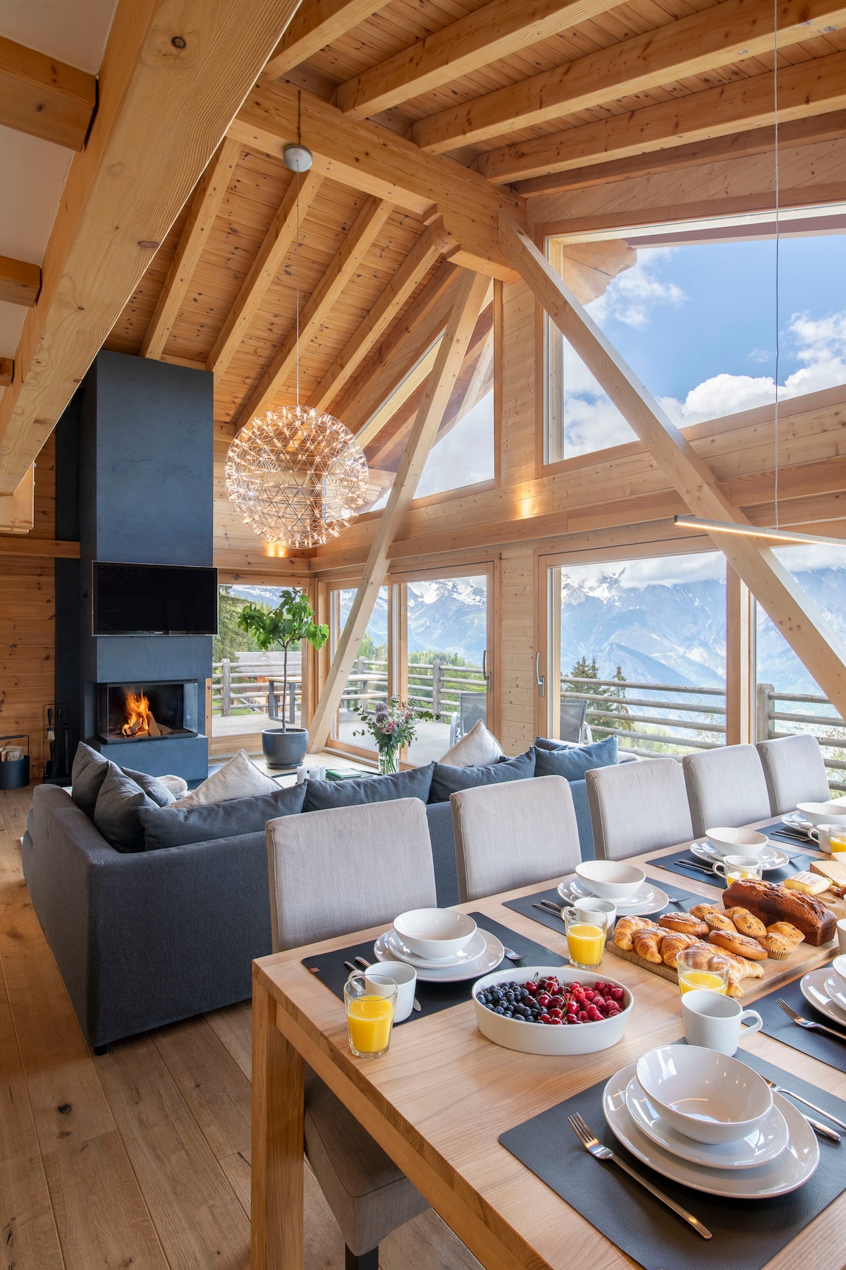 Ascunsă într-o locație liniștită, dar centrală, în satul elvețian La Tzoumaz, parte din cele 4 Vallées de la Verbier, Chalet La Chance îmbină farmecul tradițional elvețian și alpin scandinav cu luxul modern. Recent renovată, această cabană plină de lumină oferă vedere panoramică la Alpii Bernese și la cătunul Isérables. Un favorit pe tot parcursul anului, este o bază idilică pentru aventură montană sau refugiu liniștit. <h3>Dormit pentru 12</h3>