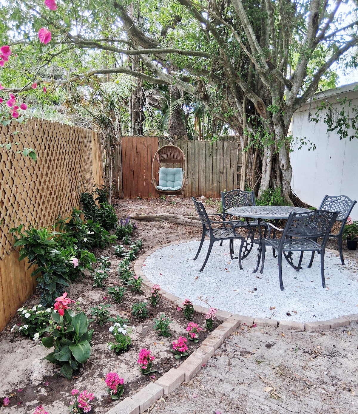 Găsește-ți pacea și liniștea chiar în inima orașului Sarasota. Fermă spațioasă pe un acru de teren vechi din Florida, decorată cu palmieri, stejari, filodendroni uriași, crotoni colorați și tufișuri coreene de hibiscus. Trezește-te cu păsări, plimbă-te cu fluturi de-a lungul pârâului liniștit, adoarme cu sunetele greierilor. Bucură-te de o reîncărcare completă a corpului și a minții cu facilitățile vibrantului centru Sarasota la îndemâna ta și la doar câteva momente distanță de renumita plajă Siesta Key!