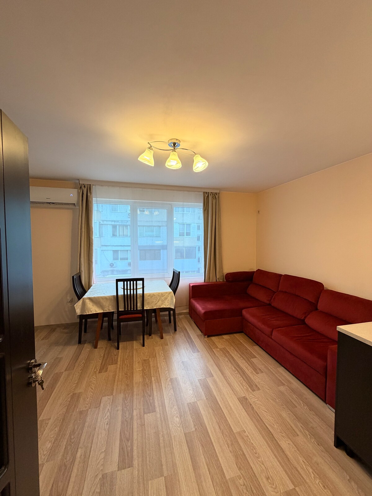Apartament modern într-o clădire nouă, la doar 50 m de centrul orașului și la 5 minute de mers pe jos de AUBG. Complet mobilat, cu o canapea extensibilă dublă, bucătărie utilată, baie cu duș, Wi-Fi rapid și aer condiționat. Locația este perfectă pentru acces facil la restaurante, magazine și atracțiile orașului. Un spațiu privat de parcare este disponibil la cerere, oferind o soluție convenabilă pentru oaspeții care călătoresc cu mașina. Check-in flexibil, cearșafuri și prosoape curate incluse, plus asistență non-stop pe parcursul șederii.