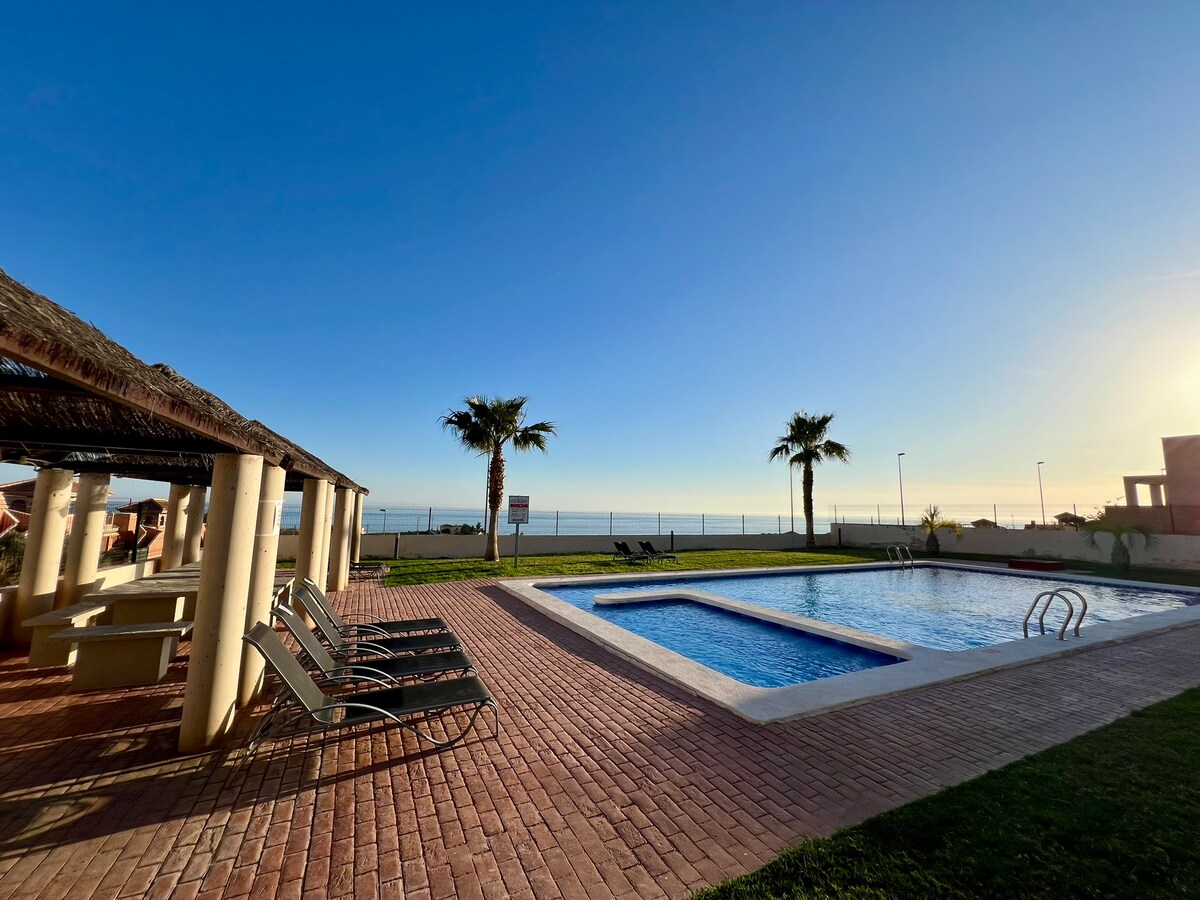 Penthouse spectaculos, cu vedere incredibilă la ocean și munte de pe terasa sa uimitoare de la solar, unde te poți bucura de apusurile de soare mediteraneene. Ideal pentru o escapadă cu partenerul tău, bucură-te de plajele minunate și de vremea lor minunată. Acesta este situat în Isla Plana, la 30 de metri de mare, este un sat mic care are tot ce trebuie să uiți pentru a lua mașina : restaurante, baruri pe plajă, supermarketuri, farmacie , bancă, ...