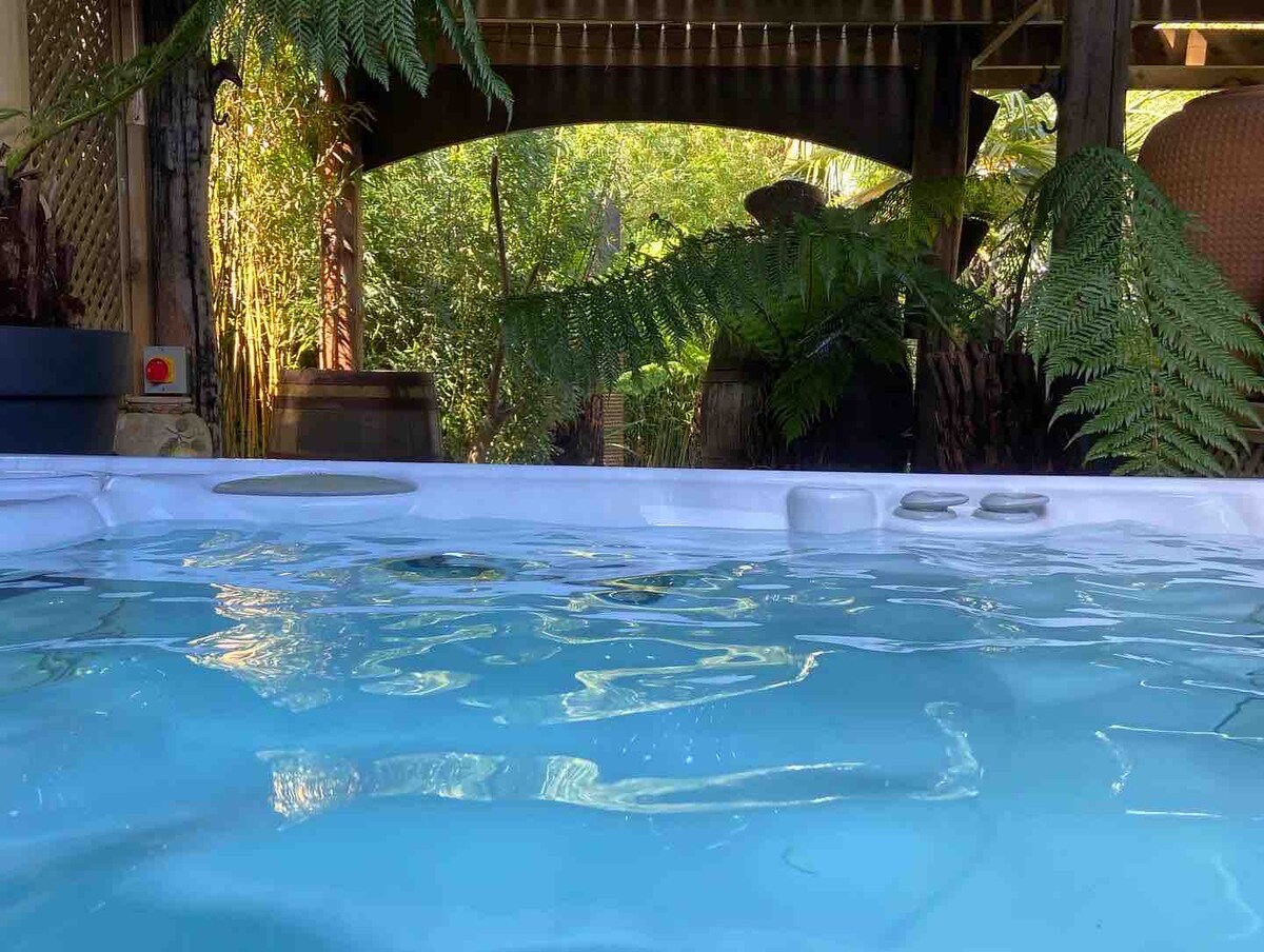 Cabană de lux super confortabilă, cu cadă cu hidromasaj „izvoare termale”, situată într-o grădină dominată de Palms, Bamboos, Tree Ferns și alte plantări exotice, creând o senzație de junglă. Fiind construit manual de către proprietar, acest spațiu este într-adevăr unul unic. Toți cei care vizitează observă că „se simt ca acolo în străinătate”. O bucătărie superbă se află lângă lounge, cu 1 din 2 arzătoare de bușteni. Baia are o atmosferă extrem de „de înaltă calitate”. Nivelul inferior dezvăluie un pat enorm cu 4 postere artizanale.