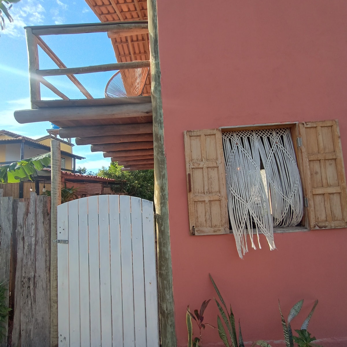 Casă în Caraíva, la 800 m de piață (biserică) și la 200 m de plajă. Este o casă cu construcție și concept indigen, adaptată pentru confortul oaspeților. Baie cu duș fierbinte. Bucătărie integrată în living, cu frigider, aragaz, friteuză, aparat de făcut sandvișuri etc. Mașină de spălat externă de 14 kg. Mezaninul are un dormitor mare și un balcon cu un hamac. Conține, pe lângă un pat queen-size, două paturi de o persoană, toate bine distribuite. Aer condiționat. Gazon interior mare cu duș în aer liber.