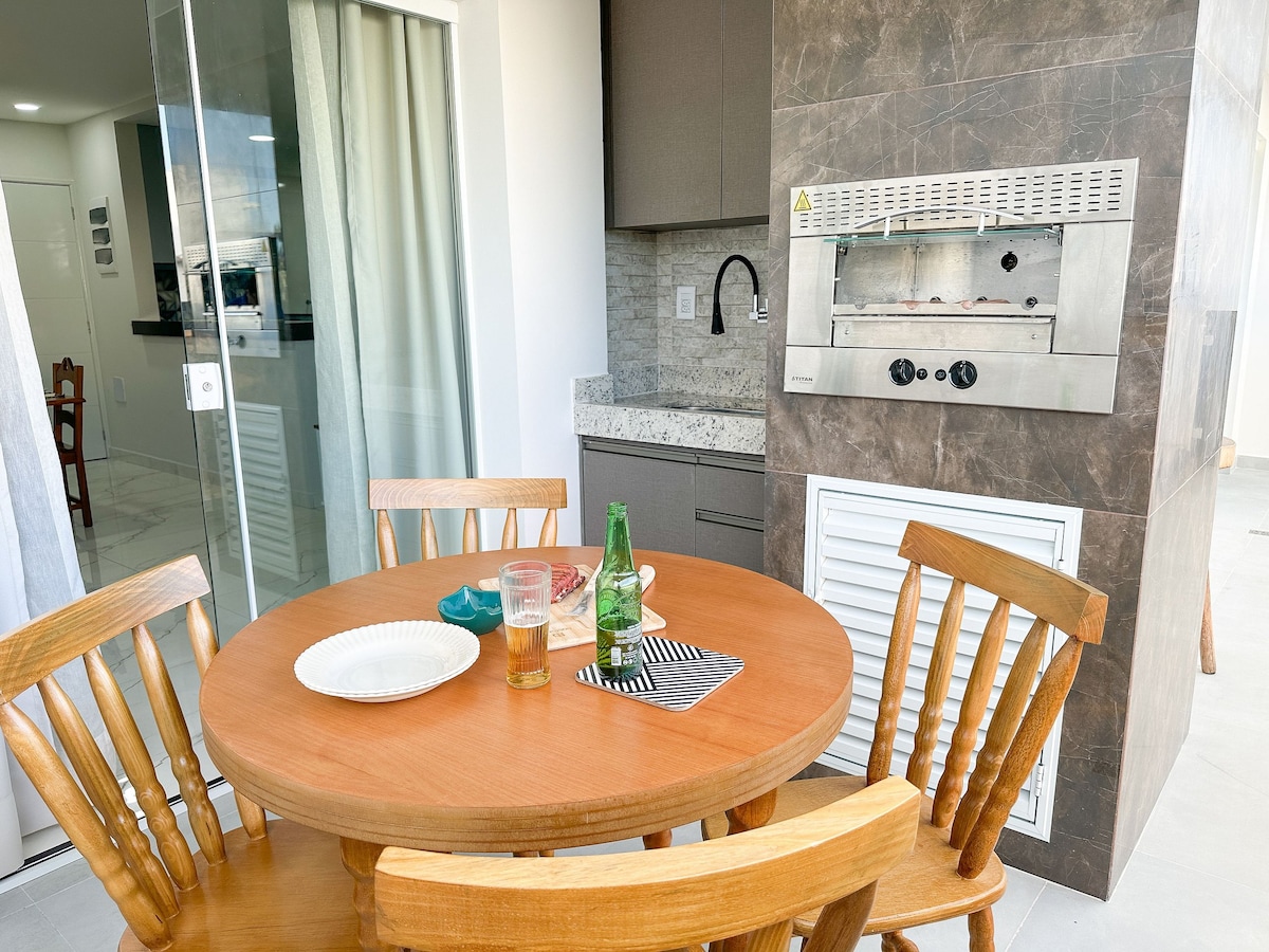 Apartament la 5 minute de plajă. Magazin în apropiere (supermarketuri, brutărie, farmacie, snack bar) și transport public la ușă. Spațiul are Wi-Fi, acces la Netflix și altele, Smart TV, ventilator de tavan, ventilator suplimentar, pat dublu, saltea suplimentară, perne, lenjerie de pat și prosoape. Bucătărie cu frigider, aragaz, cuptor cu microunde, aparat de făcut sandvișuri și toate ustensilele. Baie completă. Zonă de servicii cu rezervor, frânghie de rufe și material de curățare. Zonă socială cu masă și grătar.