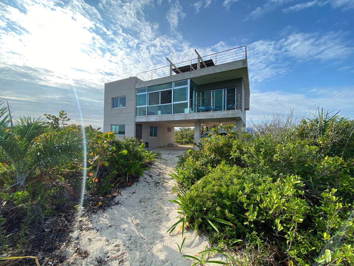 Casa de Bo es un tesoro frente al mar en El Cuyo. Despierta con el sonido de las olas, disfruta la terraza con vista al océano, la alberca y kayaks incluidos. La casa completa ofrece 4 recámaras y 4 baños para 12 huéspedes, Wi-Fi, cocina equipada, área de asador y estacionamiento. A minutos del centro, pero con la tranquilidad de una playa poco concurrida. Perfecta para familias y grupos que buscan playa real y privacidad.