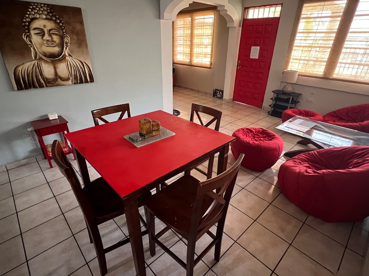 Relaxează-te în acest spațiu liniștit și primitor. Perfect pentru o scurtă vacanță la țară. Ideal pentru a scăpa de agitația zilnică și la numai câteva minute de centrele comerciale, plaje și râuri.„Casa Flamboyán”este un spațiu în care sunt găzduite până la 4 persoane. Este un loc liniștit, în mare parte însoțit de sunete de natură. Dacă vrei să ai o scurtă vacanță fără presiune sau griji, cu excepția odihnei și relaxării...acesta este locul..."Casa Flamboyán"!!!