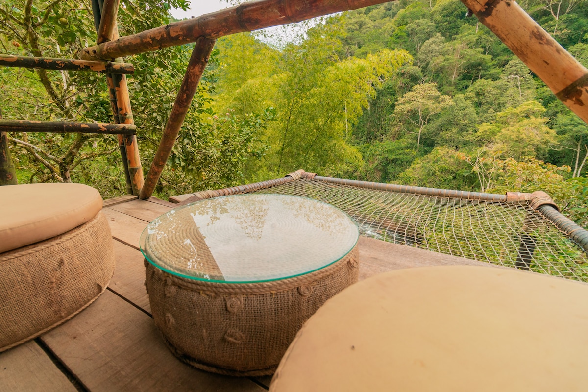 Vive una experiencia de glamping rodeado de selva, árboles y el relajante sonido del río. 🦜 Disfruta de noches bajo cielos estrellados y despierta con el canto de las aves. 🐦 Los fines de semana hay fogatas para compartir momentos especiales, además de senderos hacia cascadas, avistamiento de aves y encuentros con monos aulladores. 🌿 Un espacio ideal para desconectarte, relajarte y vivir la naturaleza del Eje Cafetero con comodidad y aventura. 🌄