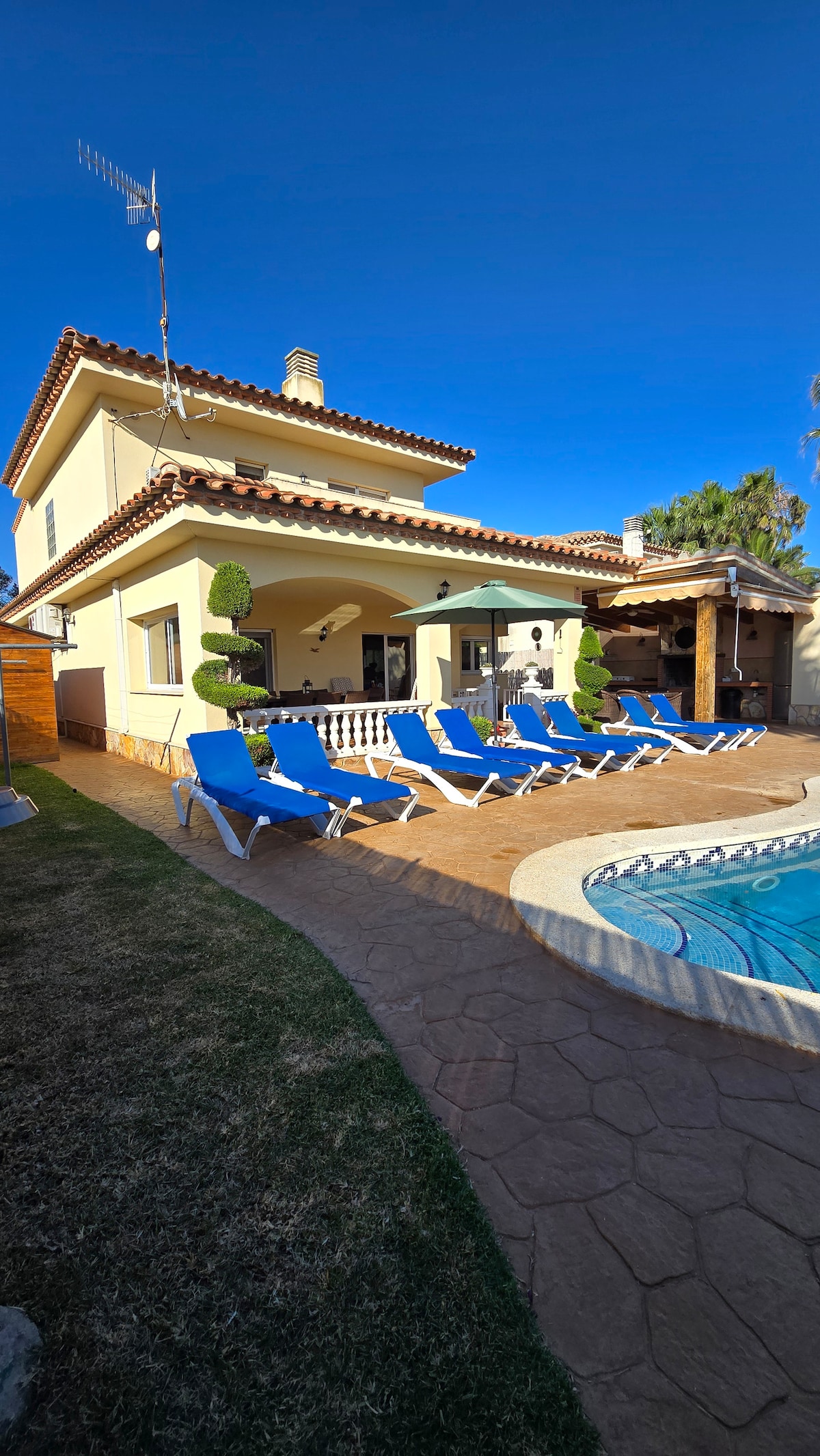 Vila separata cu locatie foarte buna, mobilier nou, trei dormitoare, una dubla si cealalta dubla cu dulapuri. Living și sufragerie care comunică cu chicineta. Baie completă cu cadă Terasă mare cu mobilier de grădină și o terasă de top. Piscină privată cu solar, dotată cu mobilier și grătar, toate împrejmuite, ideală pentru animale de companie și copii. WiFi gratuit. Fără extra. Parcare privată în afara sau în garaj.