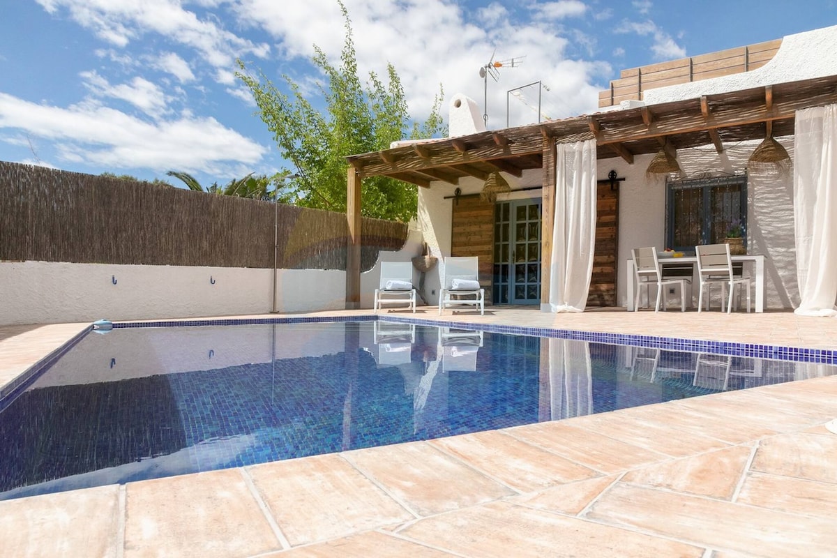 Eivissa house is a beautiful renovated house, very close to the sea (150m) with private area, located in the urbanization of Riumar (Deltebre), in a quiet residential area, safe and well communicated, a few minutes walk from the beaches, as well as the Natural Park of the Ebro Delta.<br><br>With capacity for 4 people, 1 bathroom, a kitchen and living room. The outdoor area of the house has a fantastic pool, garden, barbecue and chill out terrace with sea views.