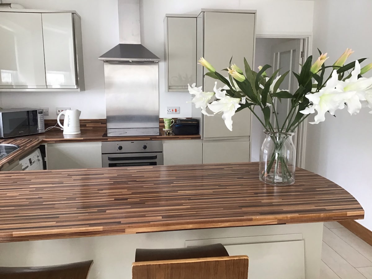 Bungalou construit special/anexă în grădina din spate, care poate fi împărțită. Intrare proprie și terasă exterioară cu acces la nivel. Grădină comună cu încuietoare la poartă atât de sigură pentru copii. Proprietate nou construită care îți permite să ai intimitate cu tot confortul locuinței oferit. Există parcare comună gratuită la proprietate și pe străzile din jur. Suntem la 1,5 mile de plajă, la 1 milă de gară cu o stație de autobuz la 2 minute de mers pe jos. Suntem aproape de traseul Exe. Exeter City e la 8 mile depărtare.